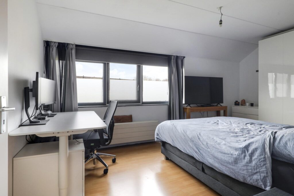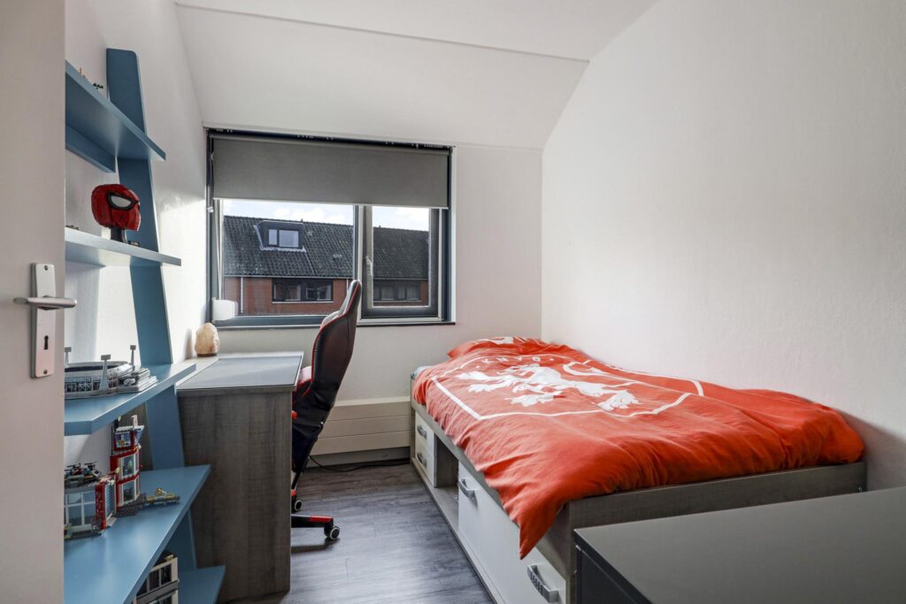 De 2 slaapkamers aan de achterzijde zijn volwaardige kinderkamers maar hier kun je natuurlijk ook prima een werkkamer creëren. Overigens zijn deze kamers voorzien van rolluiken waardoor ze 100% te verduisteren zijn.