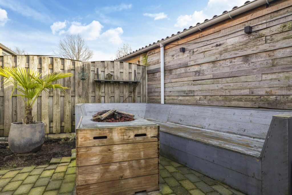 De onderhoudsarme achtertuin heeft een gunstige zonligging (zuiden) en is voorzien van zonwering, een ruime, houten schuur (ca. 6m²) en een achterom met overkapping. De woning is gelegen aan een rustig, kindvriendelijk en groen opgezet hofje met fruitbomen voor de deur. Zowel de dorpskern (met winkels en horeca) alsmede het recreatie/wandelgebied ‘De Hetersche Waarden’ liggen op loopafstand.