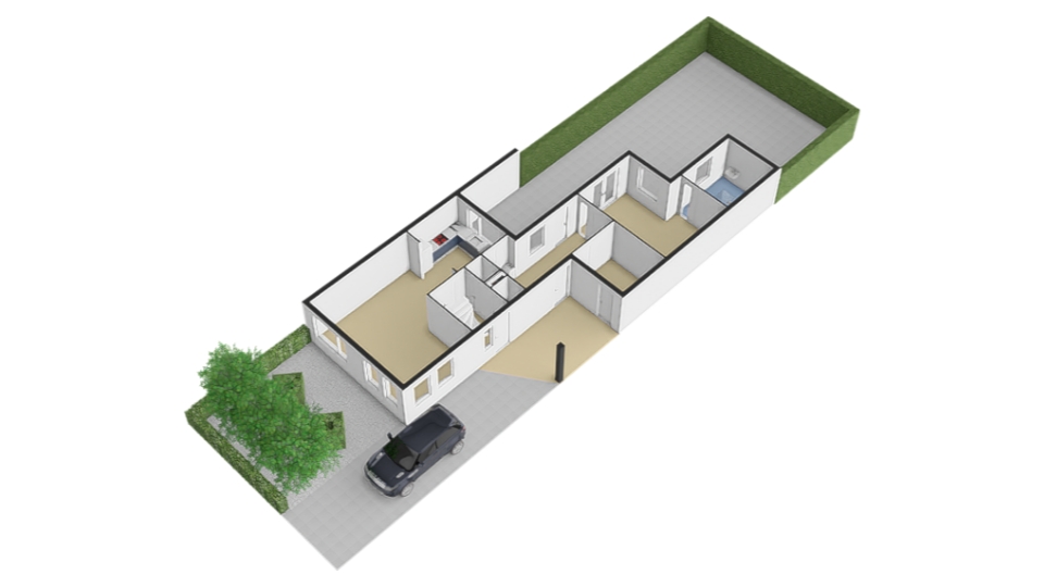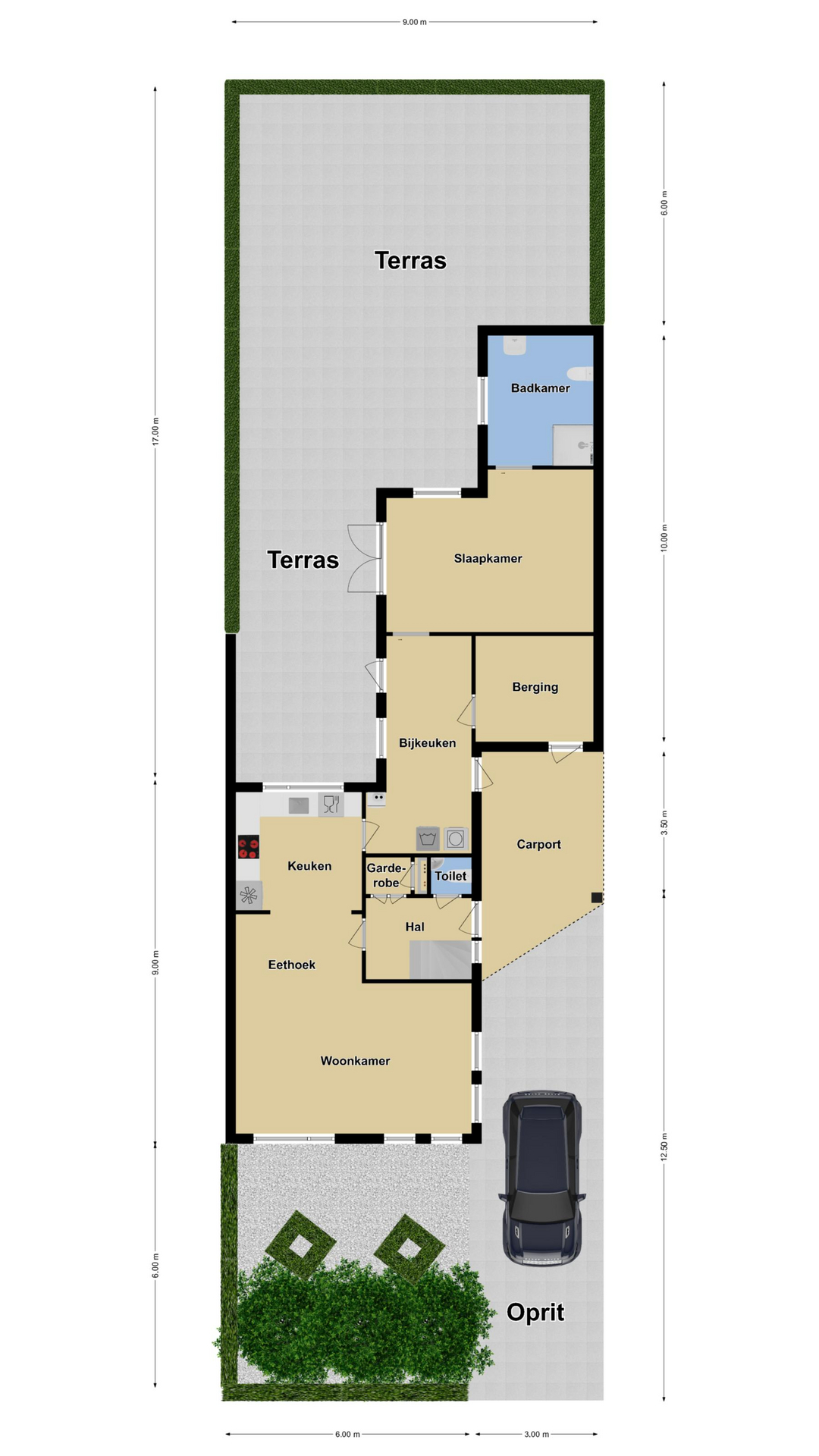 Het perceel is net iets meer dan 300m2 groot en dat geeft ruimte en vrijheid. De OPRIT is 16 (!) meter diep waardoor je meerdere auto’s op eigen terrein kunt parkeren. Het laatste gedeelte is zelfs overdekt middels een CARPORT.