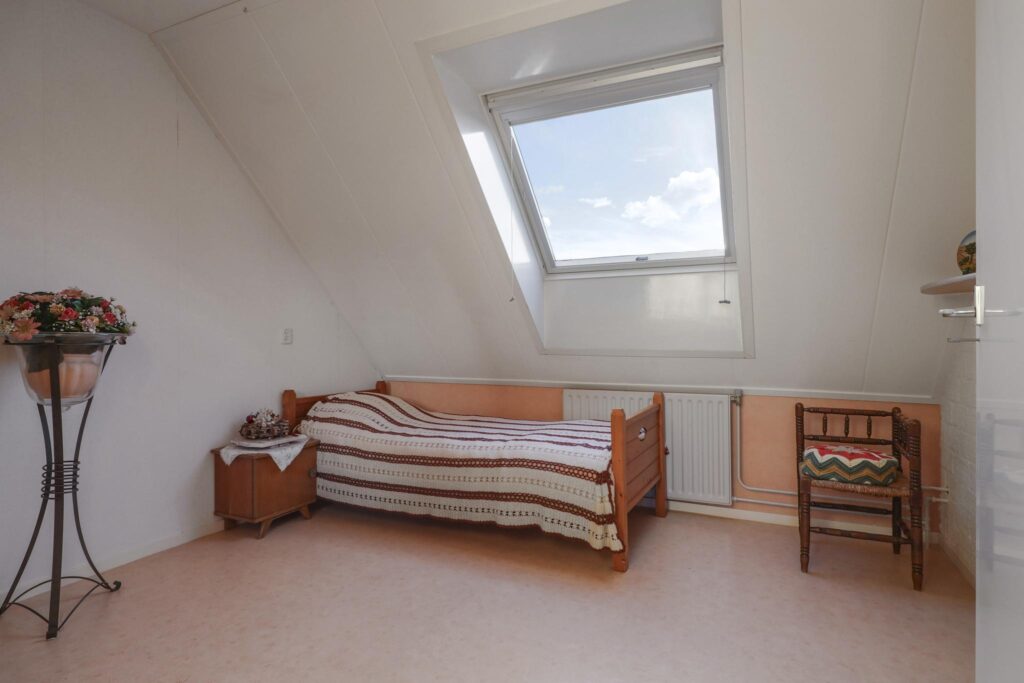4e Slaapkamer met groot dakvenster en knieschot opbergruimte.