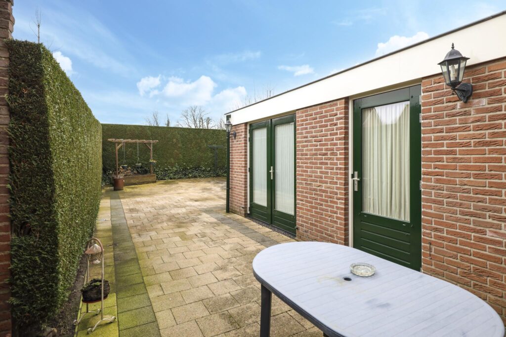Quote van de makelaar: “Deze woning is in meerdere opzichten bijzonder te noemen. Niet alleen vanwege de zonnige en vrij gelegen achtertuin, maar ook vanwege het aantal toiletten, badkamers en de mogelijkheid om op de begane grond te leven. Daarnaast biedt de royale aanbouw de ideale mogelijkheid voor een salon of praktijk aan huis”.