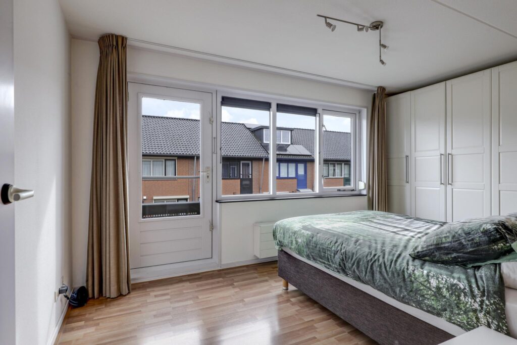 Op de 1e verdieping geeft een prettige overloop toegang tot 3 slaapkamers en de badkamer. De hoofdslaapkamer is verrassend ruim en aan de voorzijde en over de gehele breedte gelegen. Een Frans balkon geeft de kamer een extra element. Alle kamers zijn met elkaar voorzien van een verzorgde laminaatvloer. Noemenswaardig is dat alle ramen zijn voorzien van horren én rolluiken. De kamers 100% verduisteren hoeft dus geen probleem te zijn, zelfs niet wanneer de ramen open staan en insecten geen kans krijgen.