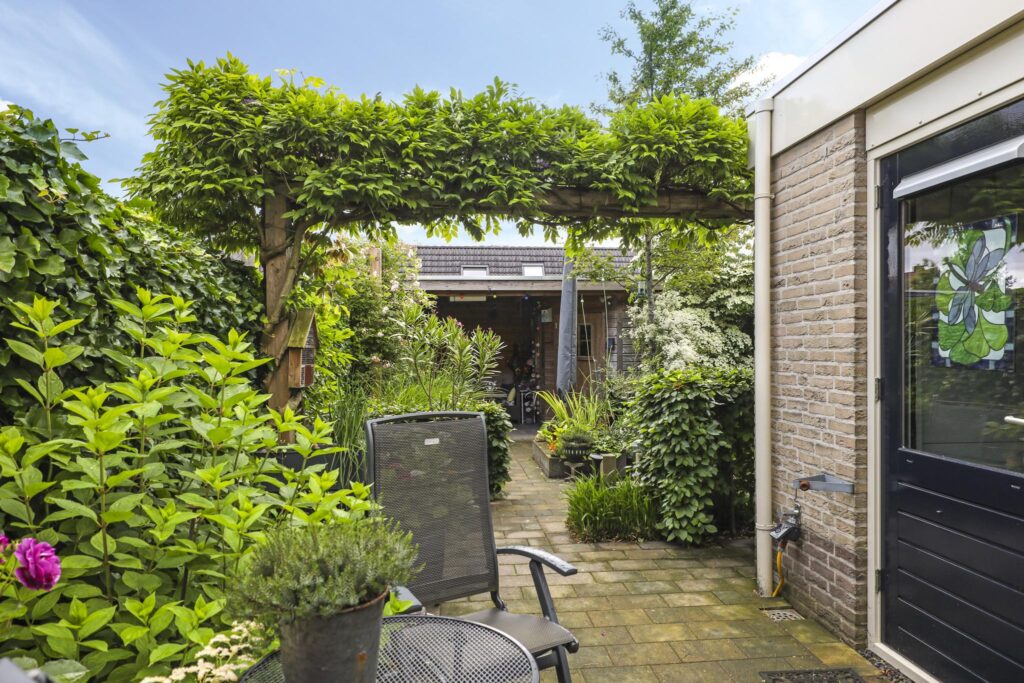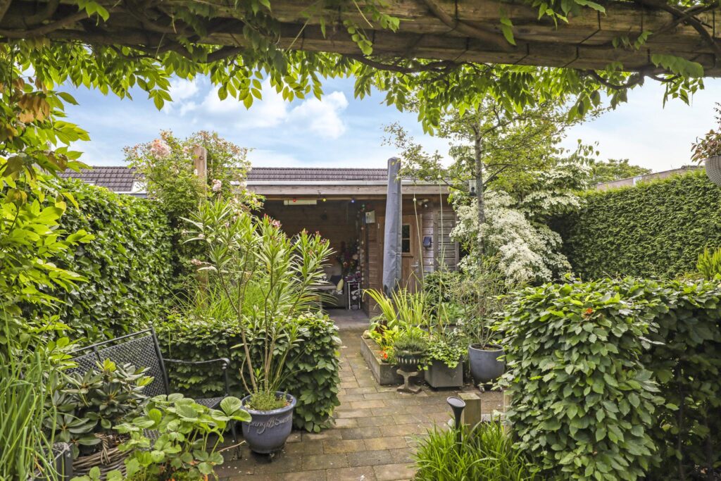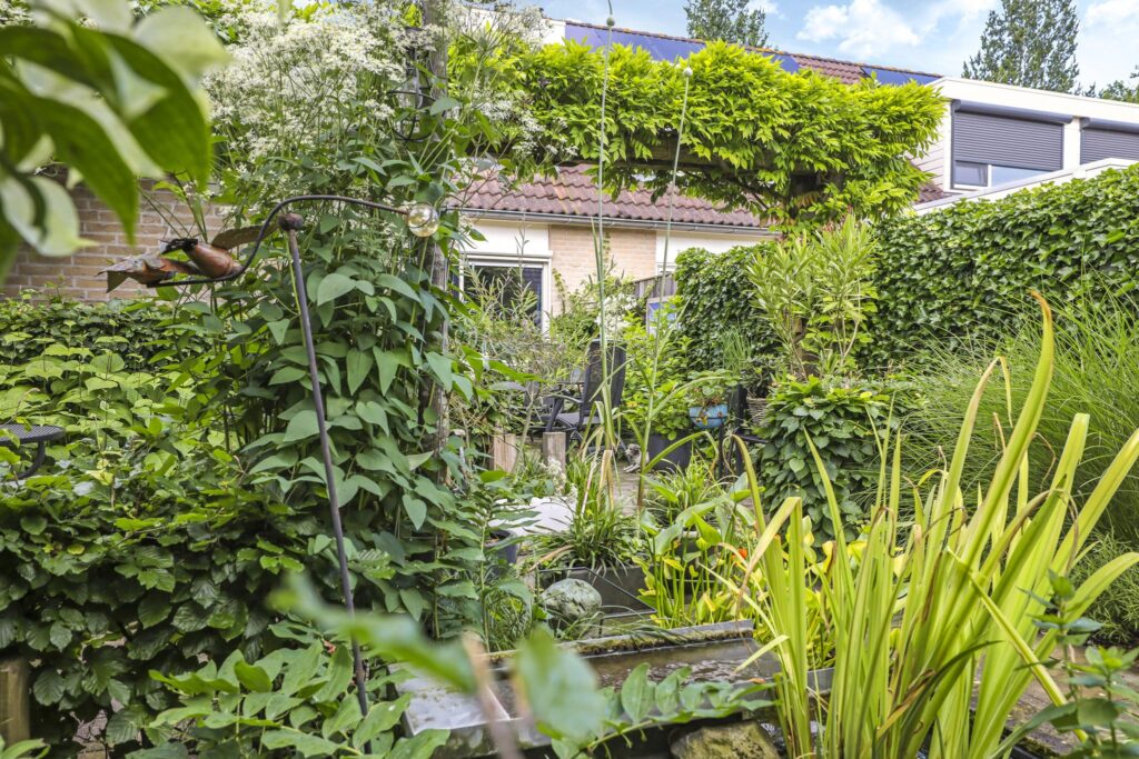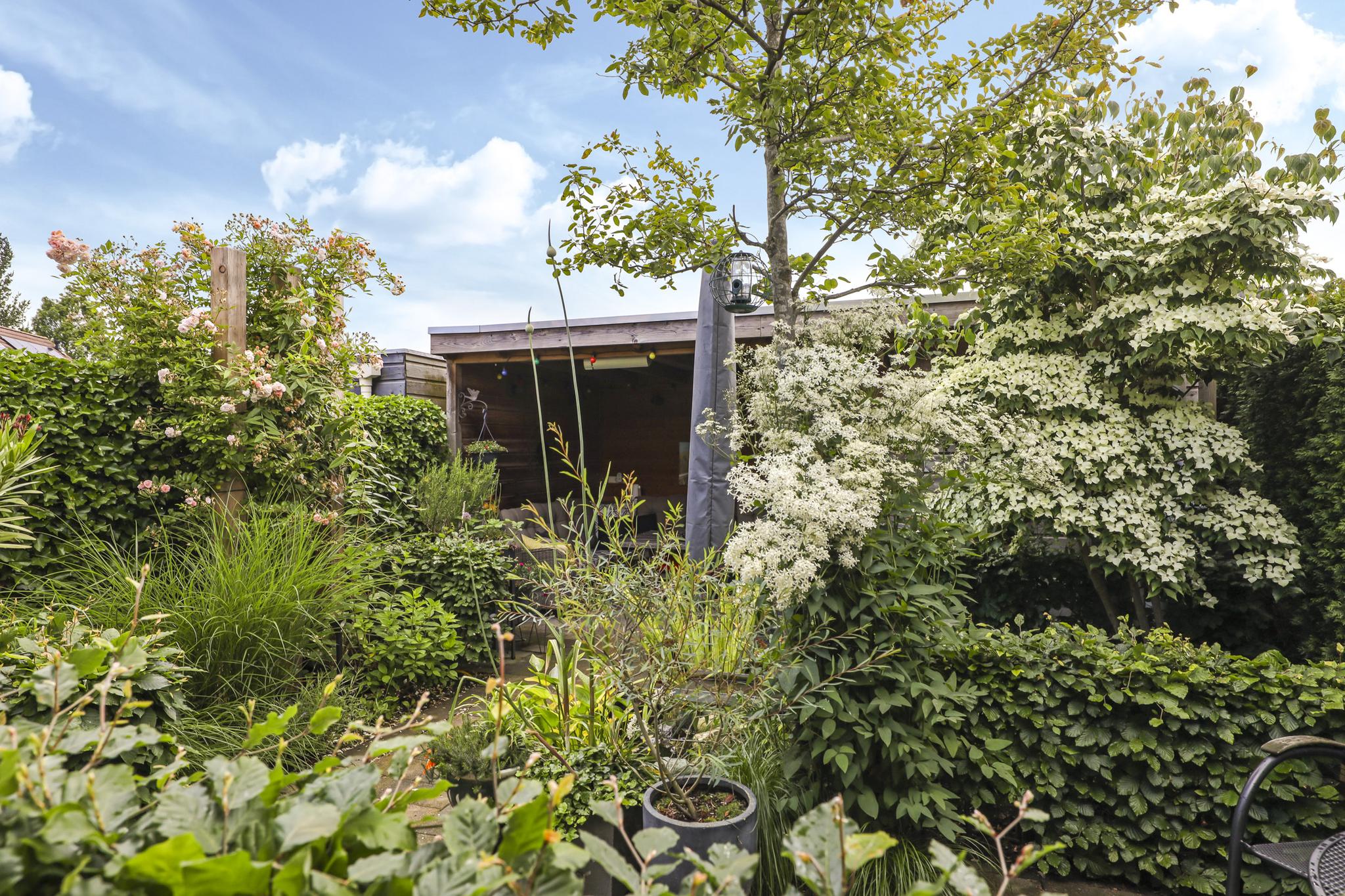 Bij een leuk huis hoort ook een aantrekkelijke achtertuin van 14 meter diep. In 2015 is de tuin geheel opnieuw aangelegd waarbij er is gekozen voor kleurrijke bloemen en een ‘4-seizoenenboom’: Voorjaar vol bloemen, zomer vol bessen, een slotakkoord met mooie herfstkleuren en in de winter bladvrij waardoor de zon lekker in de veranda schijnt. Halverwege de tuin is een watervalletje te vinden. Om de tuin ook op een warme zomerdag groen te houden, is er een druppelsysteem aangelegd, zowel in de voor- als achtertuin. Ook is er een watertappunt en op verschillende plekken elektra aanwezig.