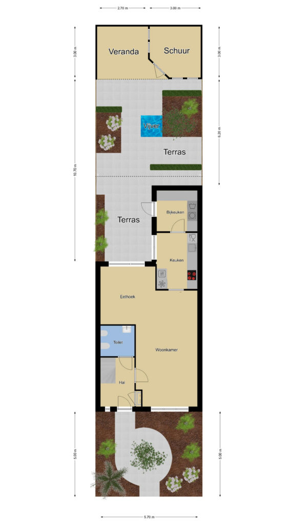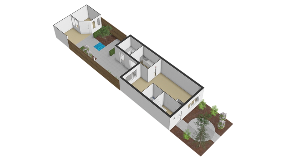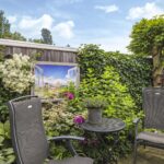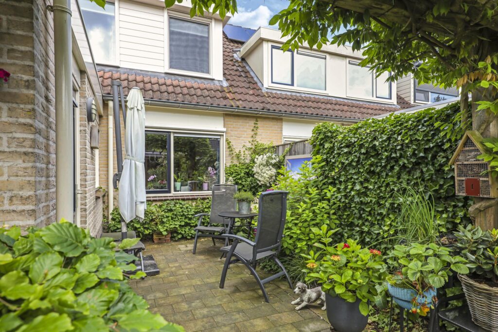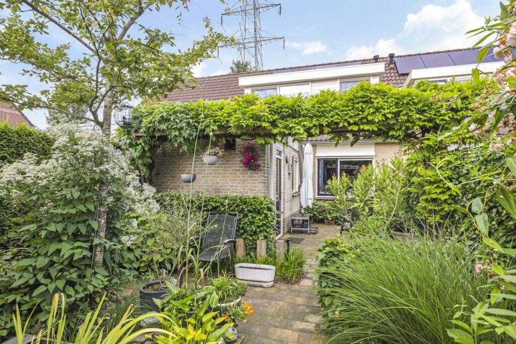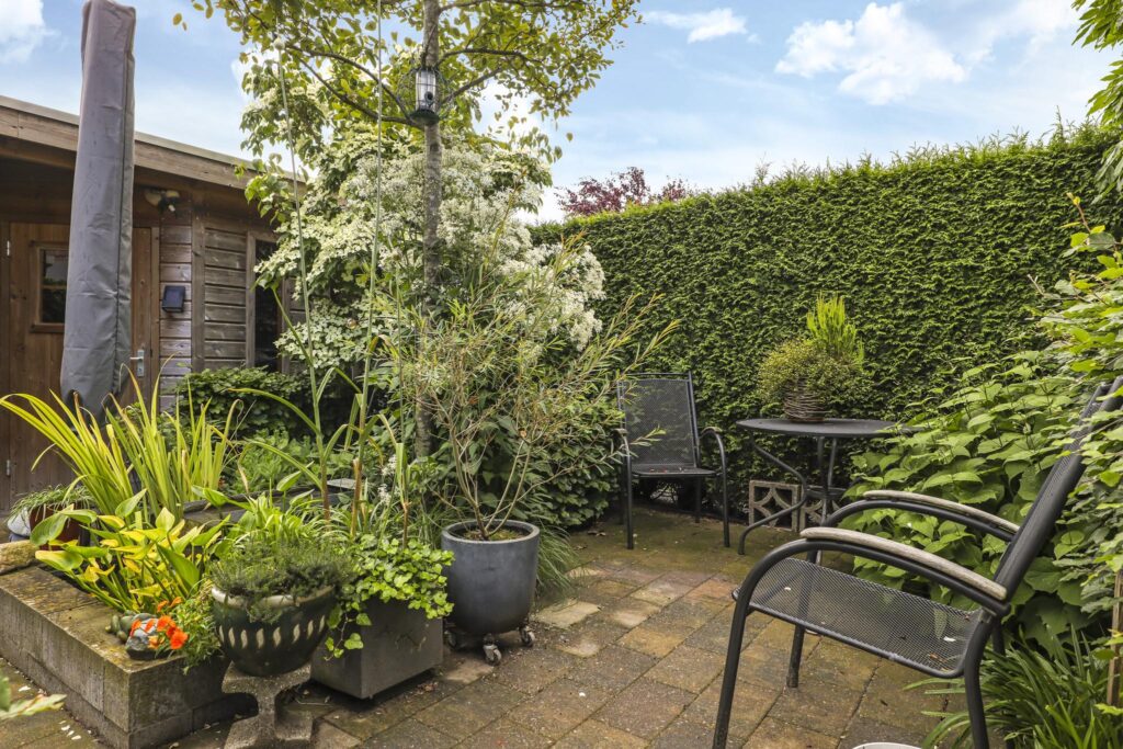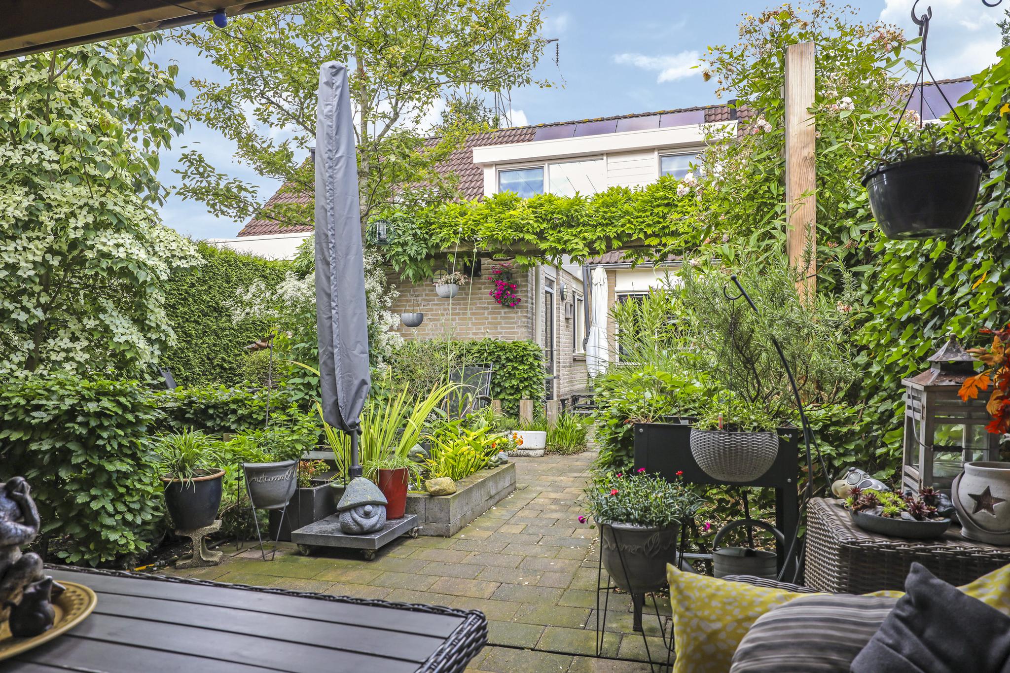 Bij een leuk huis hoort ook een aantrekkelijke achtertuin van 14 meter diep. In 2015 is de tuin geheel opnieuw aangelegd waarbij er is gekozen voor kleurrijke bloemen en een ‘4-seizoenenboom’: Voorjaar vol bloemen, zomer vol bessen, een slotakkoord met mooie herfstkleuren en in de winter bladvrij waardoor de zon lekker in de veranda schijnt. Halverwege de tuin is een watervalletje te vinden. Om de tuin ook op een warme zomerdag groen te houden, is er een druppelsysteem aangelegd, zowel in de voor- als achtertuin. Ook is er een watertappunt en op verschillende plekken elektra aanwezig.