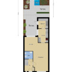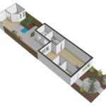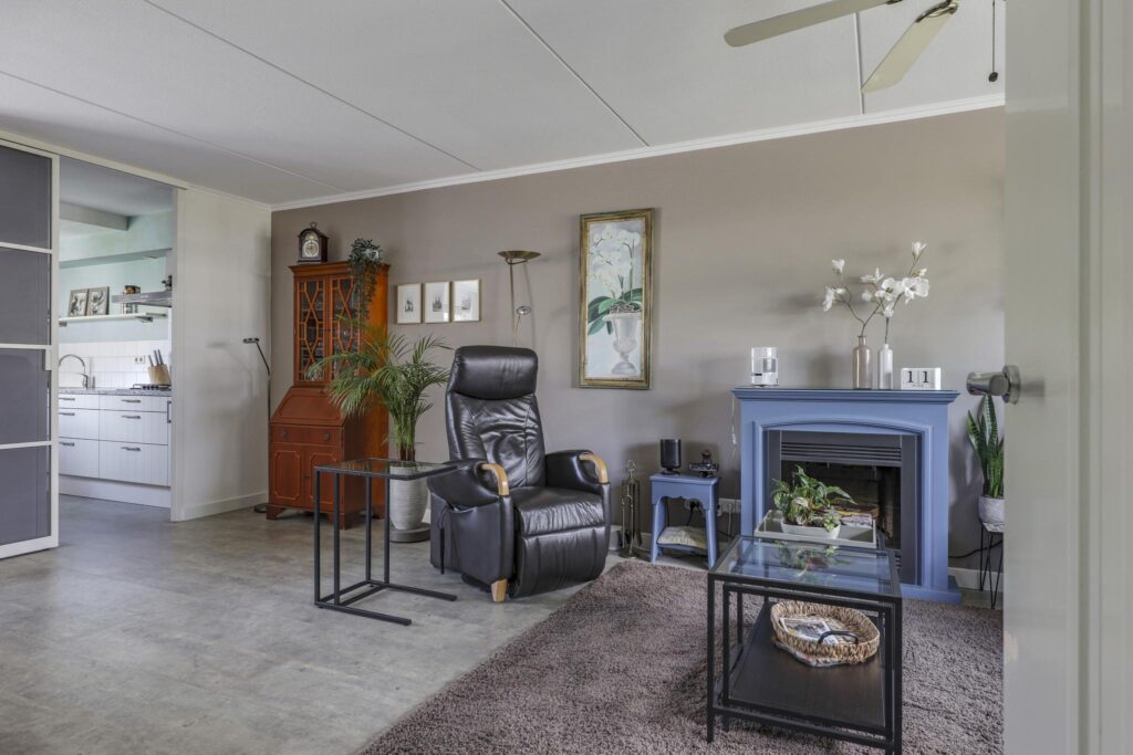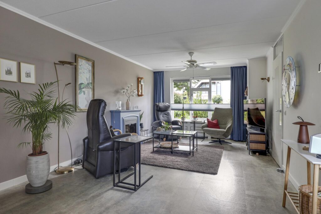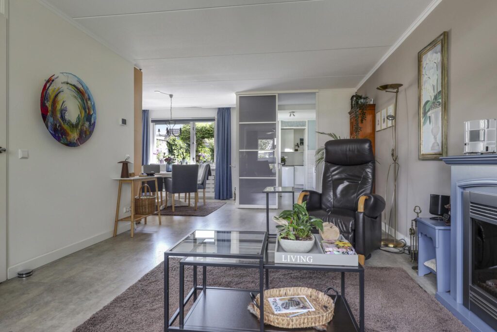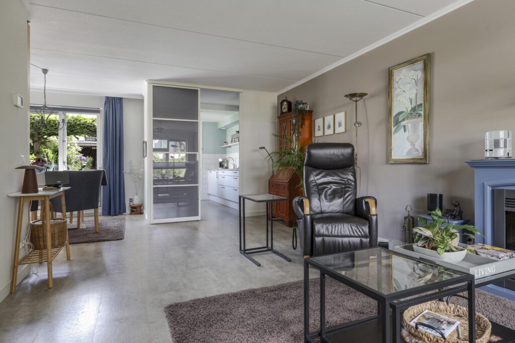 Van oorsprong is de opzet en indeling van deze woning bedacht om een slaapkamer en badkamer op de begane grond te hebben. Hierdoor zou de woning levensloopbestendig te bewonen zijn. Echter, in de huidige setting is het meer een gezinswoning geworden. De woonkamer is vergroot door de beoogde slaapkamer erbij te betrekken waardoor er een soort van Z-indeling is ontstaan. Hierdoor is er een zit- en een eethoek gecreëerd.