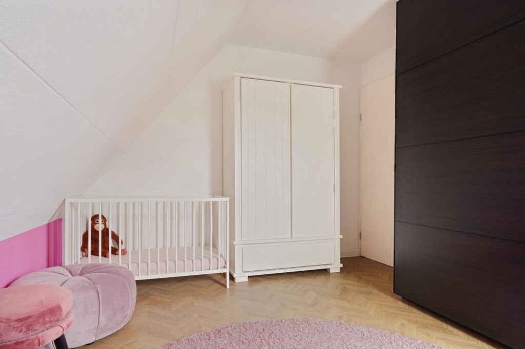 Eénmaal op de slaapverdieping wordt je verrast door een ruime overloop met daglicht. Op de vloer ligt dezelfde ‘visgraat’ laminaatvloer als op de begane grond die alle slaapkamers drempelloos aan elkaar schakelt. Dit zorgt voor een fraai éénduidig geheel.