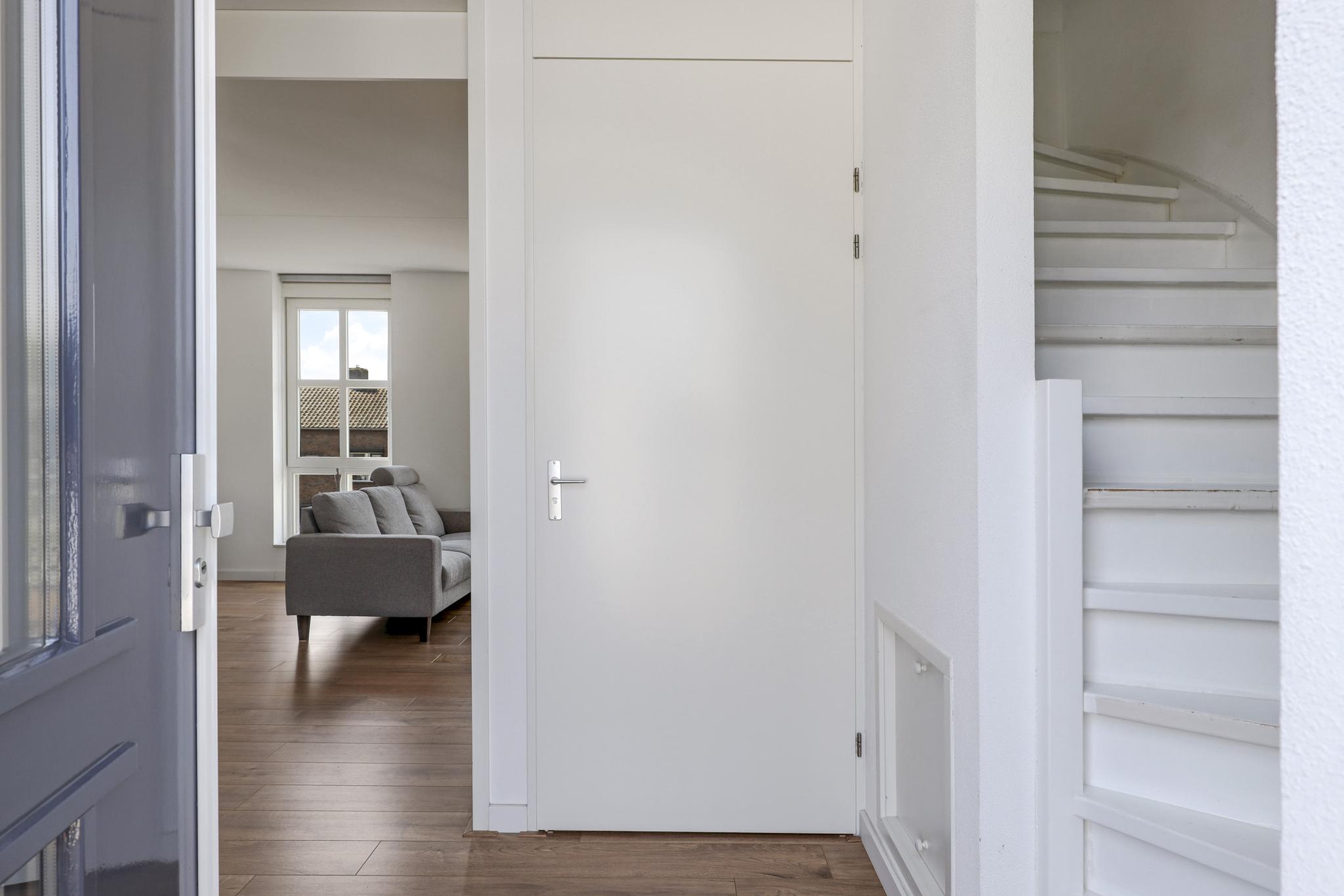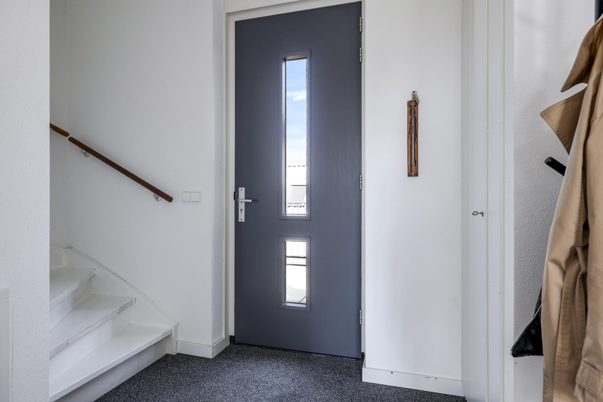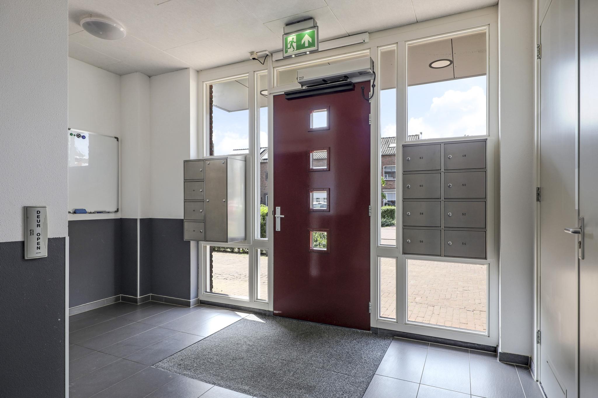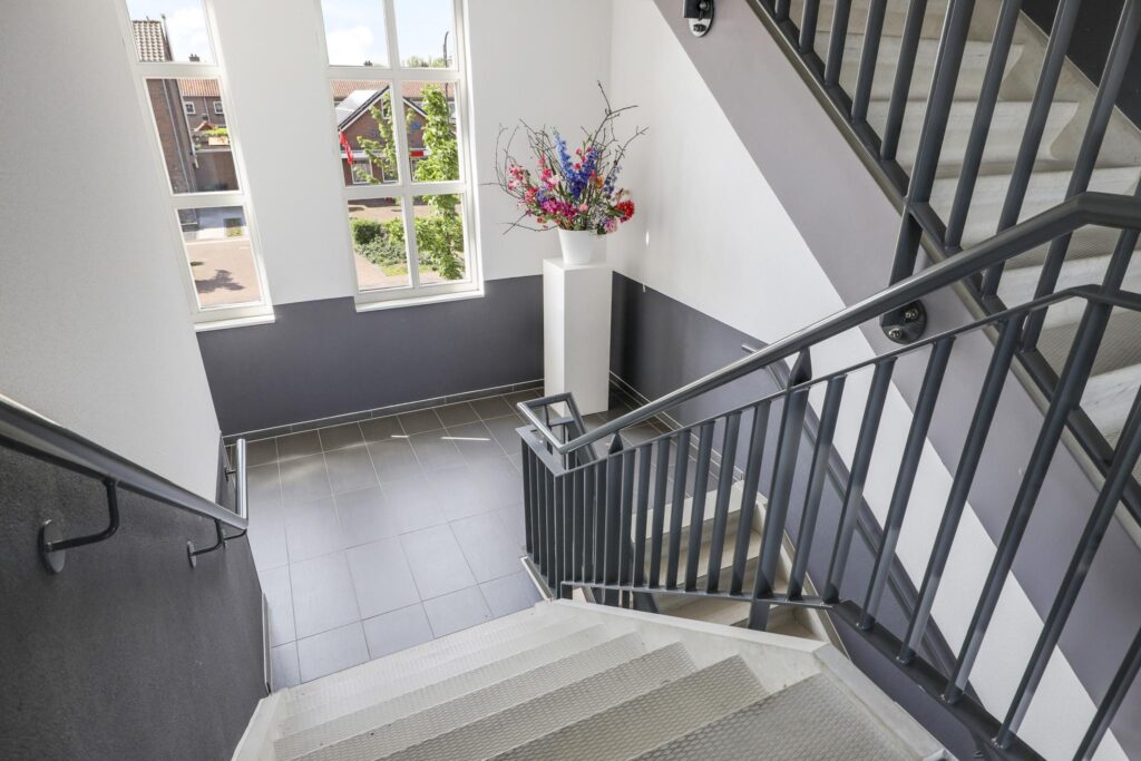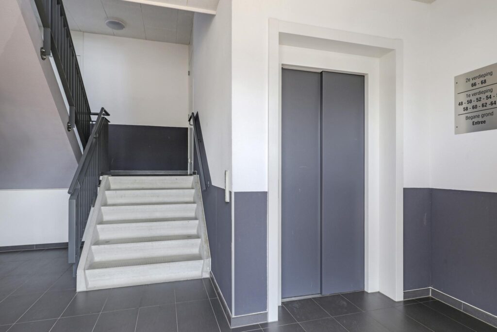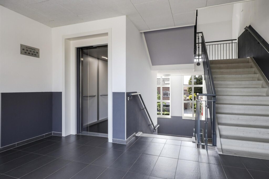 De entree van deze woning bevindt zich op de eerste verdieping. Er is een intercom aanwezig waardoor je niet elke keer naar beneden hoeft te lopen wanneer er iemand aan de deur belt. In de centrale hal op de begane grond tref je de brievenbussen, alsmede een liftinstallatie om op de woonlaag te komen.