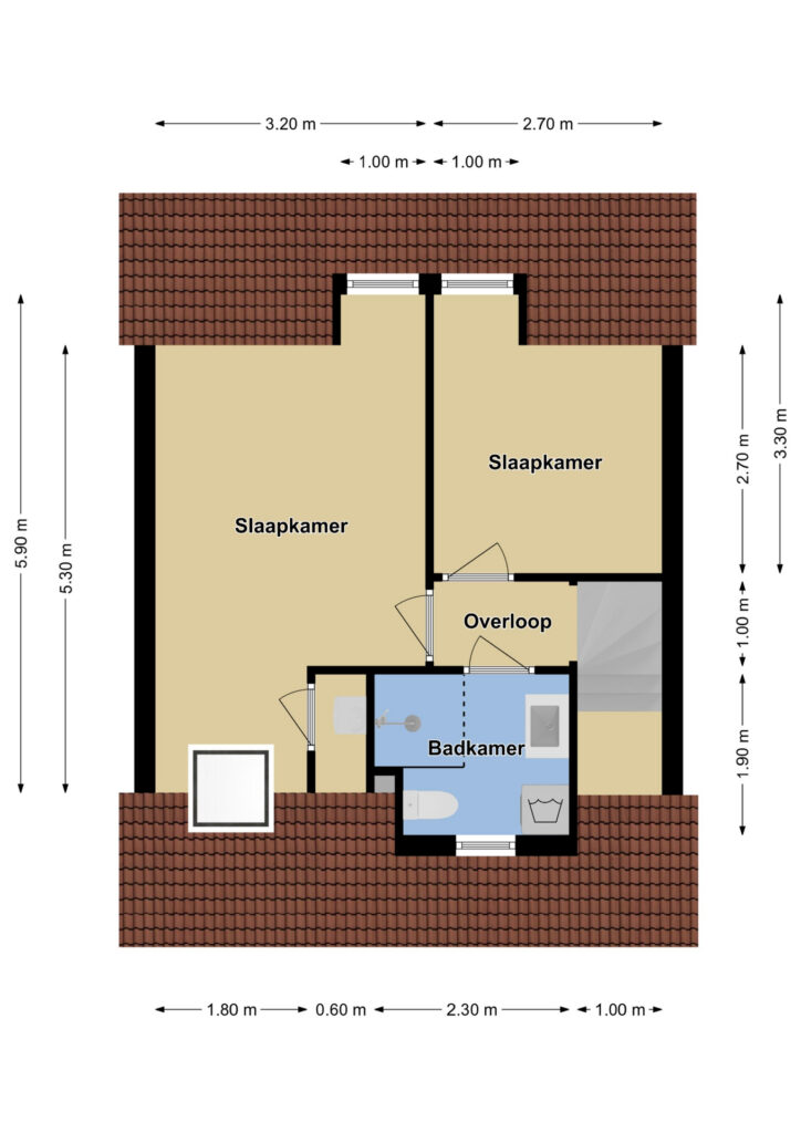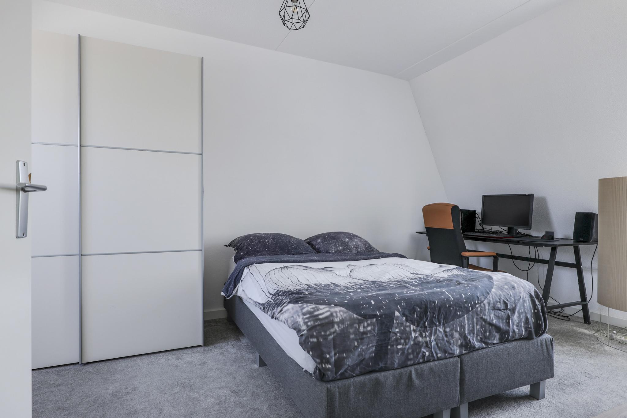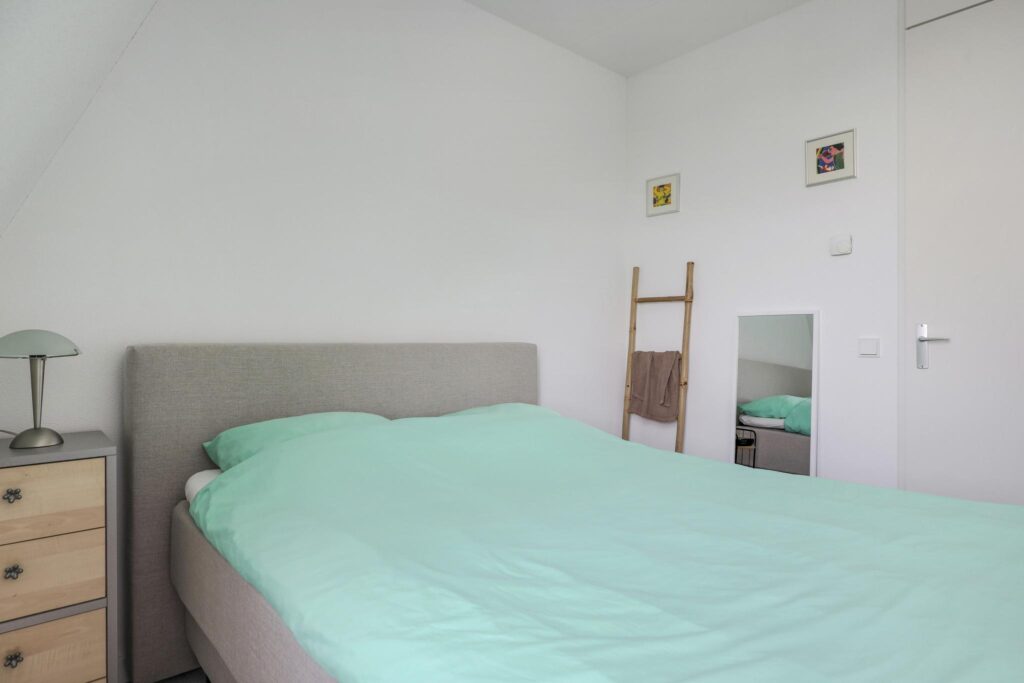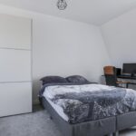 Op de bovenste woonlaag zijn 2 volwaardige slaapkamers en de badkamer gelegen. Deze kamers zijn respectievelijk 16m² en 8m² groot. Opvallend is dat ook deze woonlaag geheel is voorzien van vloerverwarming. Comfortabel is dat de vloerverwarming per kamer te regelen is. De wanden zijn neutraal en wit afgewerkt, op de vloer ligt een lichte vloerbedekking. Een sfeervol detail is de dakkapel aan de achterzijde van de woning welke doorloopt op beide slaapkamers.