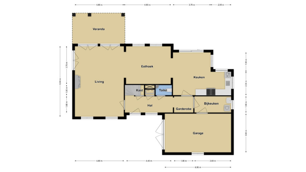 Opvallend is de aangebouwde veranda aan de achterzijde en het houthok aan de zijgevel. Deze zijn geheel in stijl met de woning in robuust eikenhout en klassieke dakpannen uitgevoerd (2021). Het schuine pannendak van de veranda (op het zuiden) is zelfs geïsoleerd om de warmte tegen te gaan. De uitvoering is vakkundig uitgevoerd door Bronkhorst Buitenleven. Ook hier is dan niet op bezuinigd.