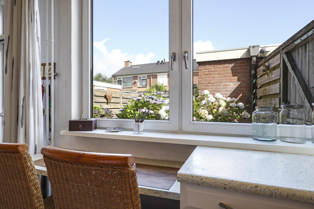 Onderhoudsvriendelijke, kunststof kozijnen (kozijn woonkamer is van hout)
