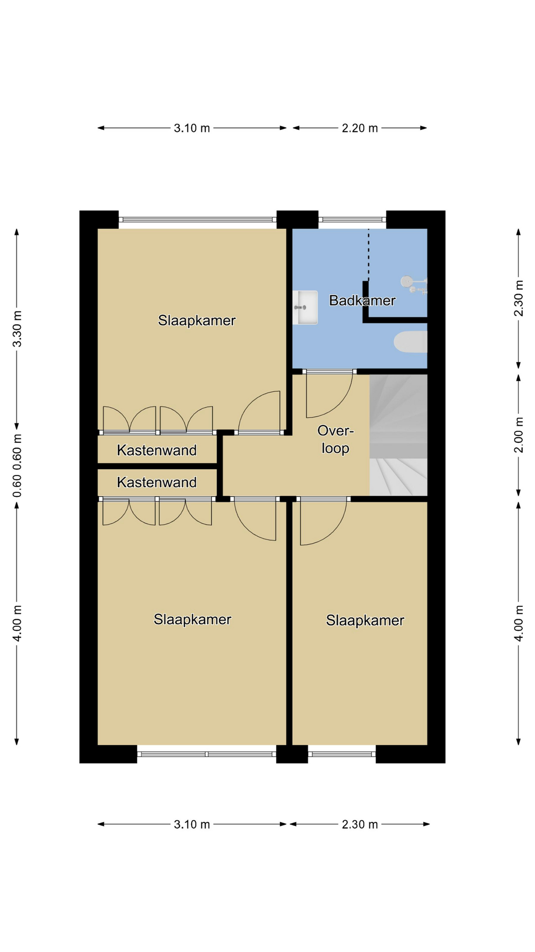 3 Slaapkamers waarvan 2 met vaste kastenwand