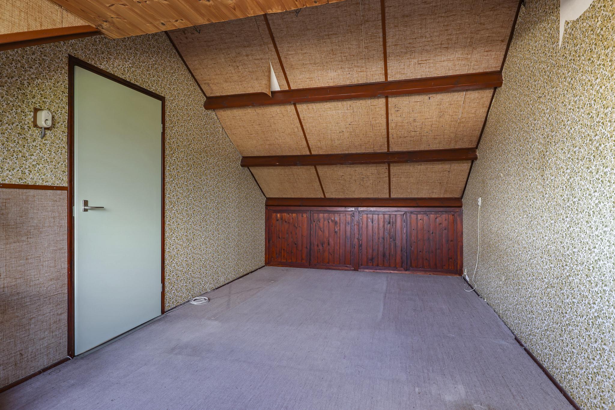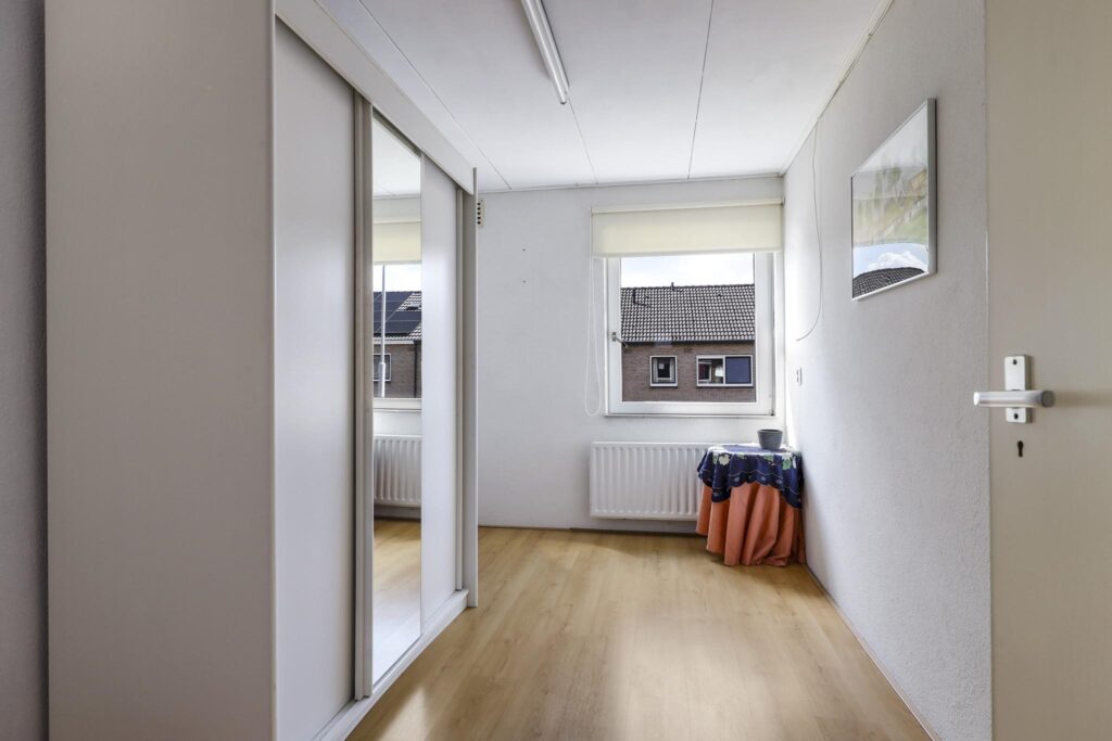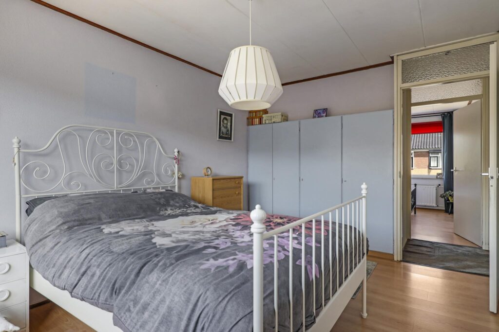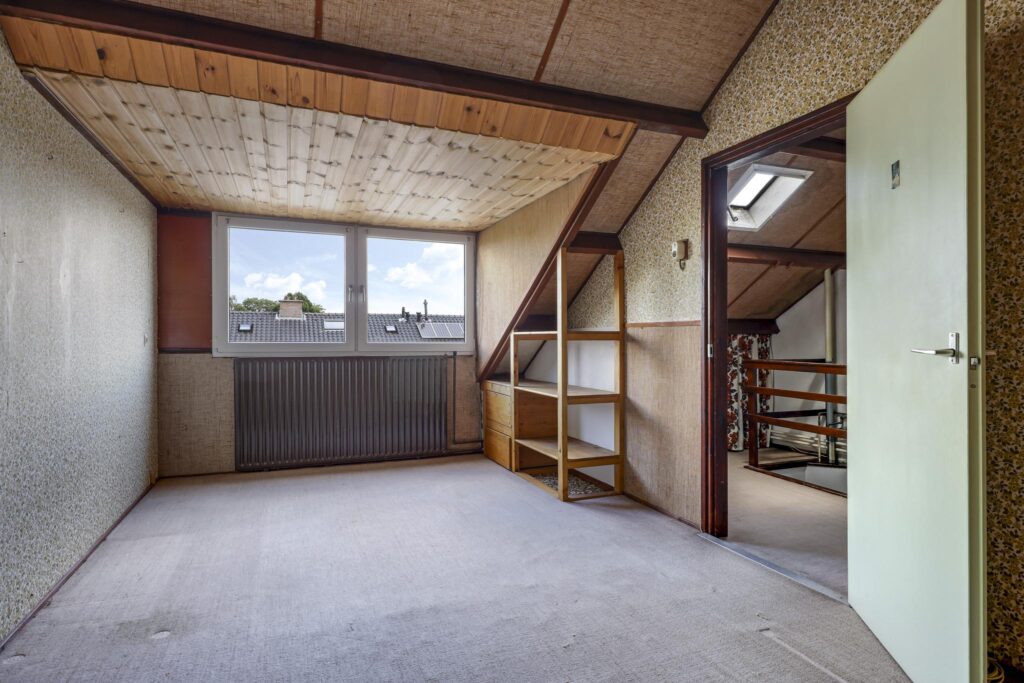 Via een vaste trap bereiken we de 2e verdieping. Deze woonlaag is opgedeeld in een 4e slaapkamer en een voorzolder. De slaapkamer is voorzien van een breed dakkapel waardoor het een aangename ruimte is welke tevens geniet van veel daglicht. Met ca. 16m² is dit tevens geen kleine kamer. De voorzolder is eveneens ruim waarbij een klein dakraam zorgt voor de nodige lichtinval. Je treft hier onder andere de witgoedaansluitingen alsmede de opstelling van de cv-ketel. Onder de schuine dakvlakken is praktische knieschot opbergruimte aanwezig.