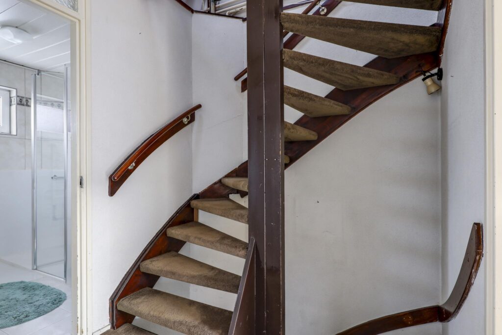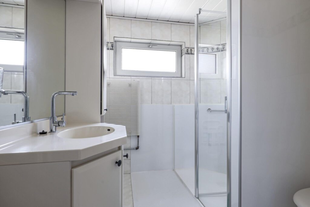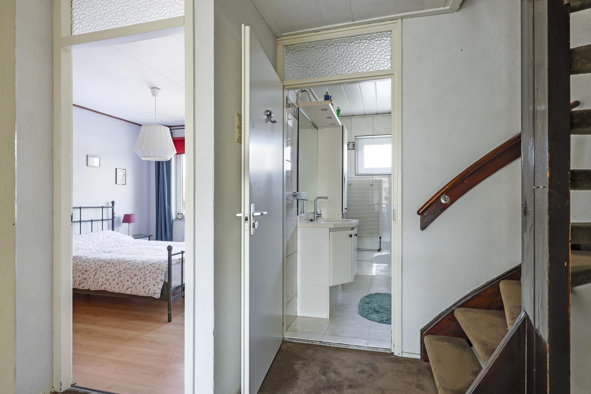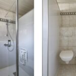 De 4e deur op de overloop biedt toegang tot de badkamer. Deze ruimte is ingedeeld met een inloopdouche, een wastafelmeubel met kolomkast en een 2e toilet. Voorheen stond hier een ligbad/douche combinatie wat ruimte heeft gemaakt voor een royale inloopdouche. Mocht een ligbad op je wensenlijst staan, dan zou je deze dus wel kwijt kunnen. Een hooggeplaatst raam zorgt voor de nodige daglichtinval en een ventilatiemogelijkheid.