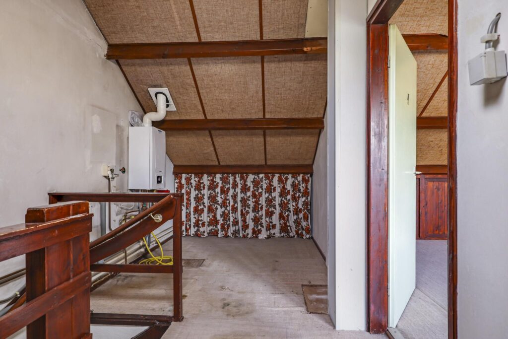 Voorzolder met washoek, cv-ketelopstelling, knieschot opbergruimte en dakvenster.