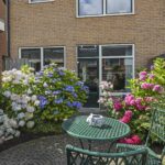 Comfortabele achtertuin met terras en diverse planten en struiken
