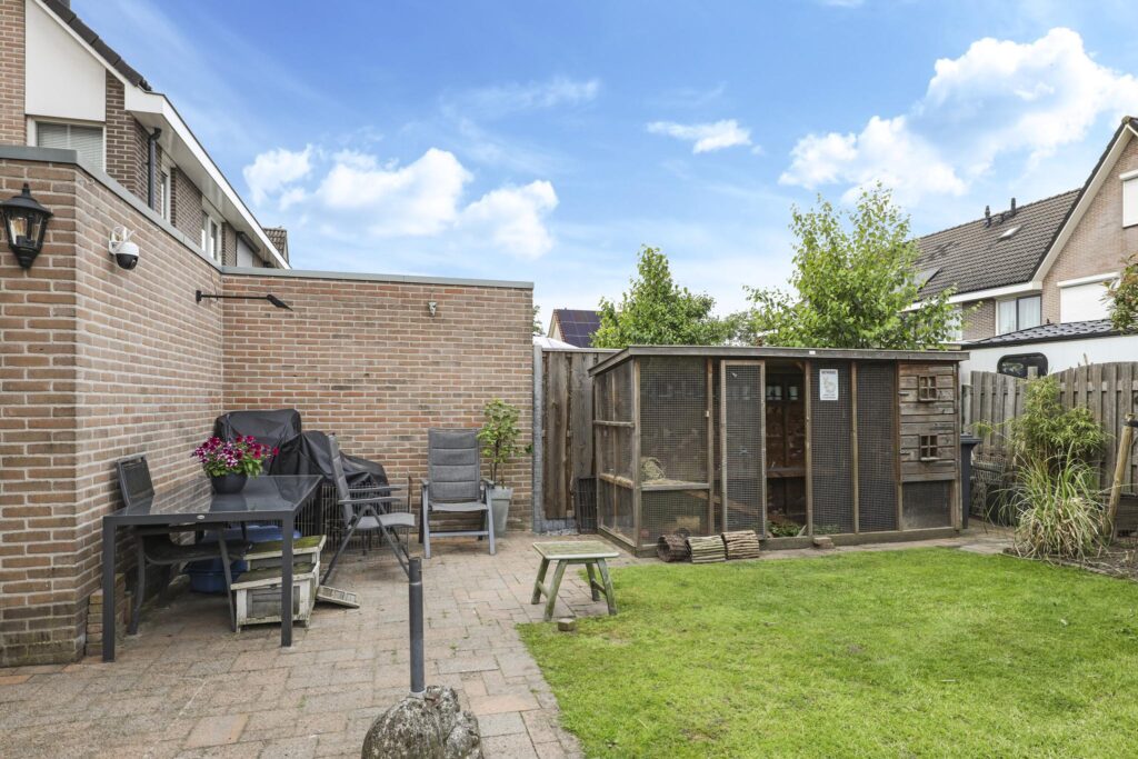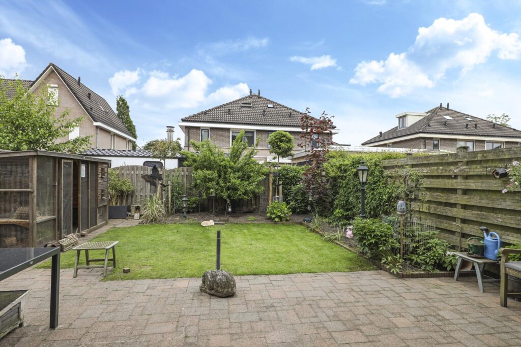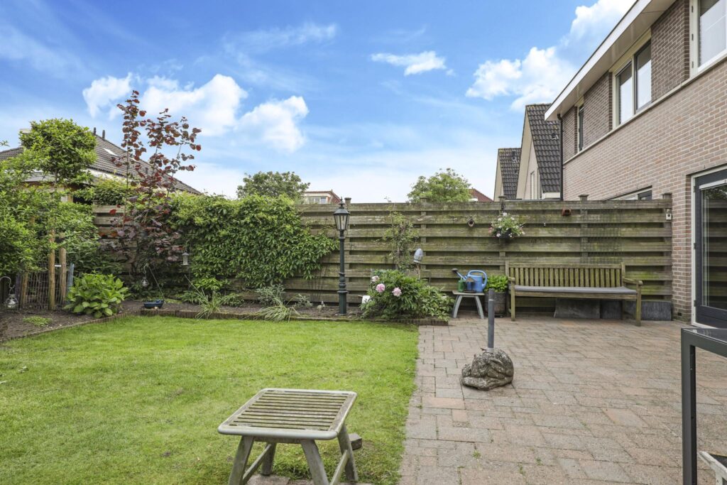 Deze ware gezinswoning wordt compleet gemaakt door een comfortabele achtertuin. Met een diepte van ruim 10 meter en een breedte van meer dan 8 meter heb je hier veel ruimte. De tuin is aangekleed met een terras met plaats voor meerdere zithoeken, gras en een diverse planten en struiken langs de erfafscheiding. Dit zorgt voor een groene en natuurlijke uitstraling. Door het formaat is er voldoende ruimte voor eventueel een trampoline of een schommel. Aan de achtergevel is een waterpunt aanwezig.