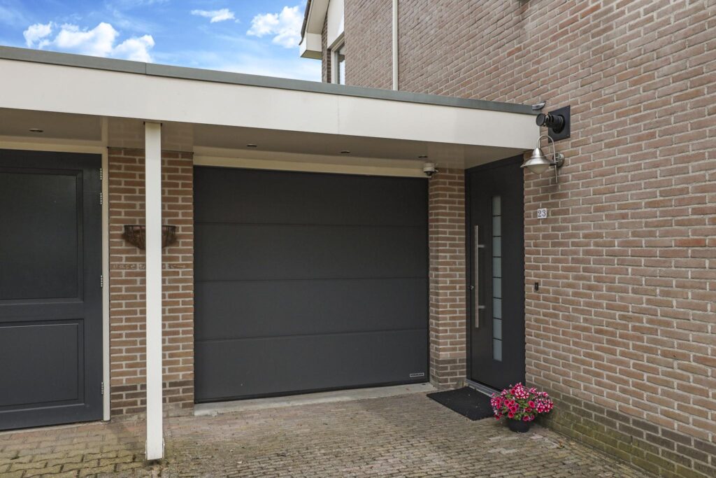 Een groot pluspunt in de aan de woning gebouwde garage. De ruimte is ca. 17m² groot waardoor je hier voldoende ruimte treft voor bijvoorbeeld het stallen van fietsen en/of motoren, maar daarnaast plaats blijft voor een fijne klushoek. Aan de voorzijde is de garage voorzien van een elektrische deur (bedienbaar via app) waardoor je hier eenvoudig met een voertuig naar binnen rijdt. Het platte dak van de garage is aan de voorzijde, ter hoogte van de voordeur, verlengd waardoor er een luifel/overkapping is gecreëerd. Hierdoor sta je bij de voordeur altijd droog.
