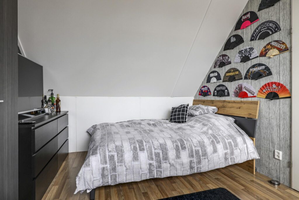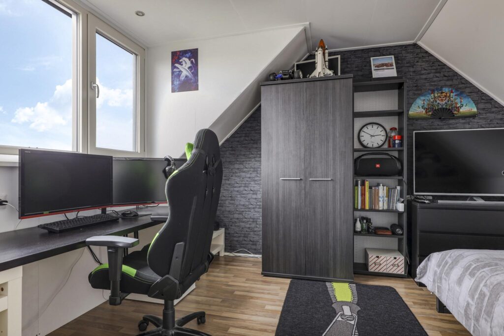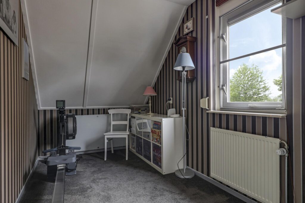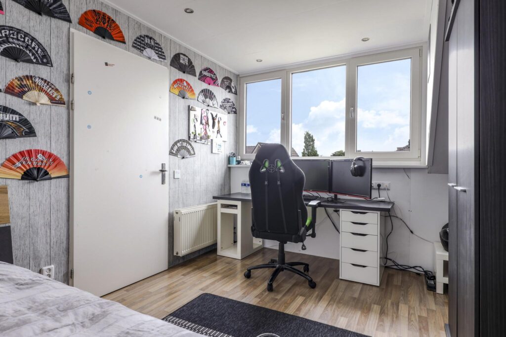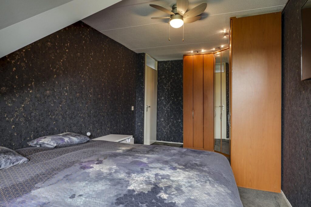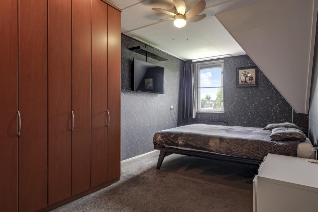De 2e verdieping van deze woning is verrassend ruim te noemen. Mede door een dakkapel is de woonlaag aanzienlijk vergroot waardoor er een riante slaapkamer is gecreëerd van ca. 12m² (gemeten vanaf 1,5m hoogte). De dakkapel is voorzien van een kunststof kozijn waardoor het ook nog onderhoudsvriendelijk is. Alle ramen zijn daarbij voorzien van elektrisch bedienbare rolluiken en horren. Op de voorzolder is zijn de witgoedaansluitingen alsmede de opstelling van de cv-ketel (2022) terug te vinden. Boven het trapgat is airconditioning geplaatst waardoor niet alleen de 2e verdieping, maar ook de 1e verdieping profiteert van een koele lucht.