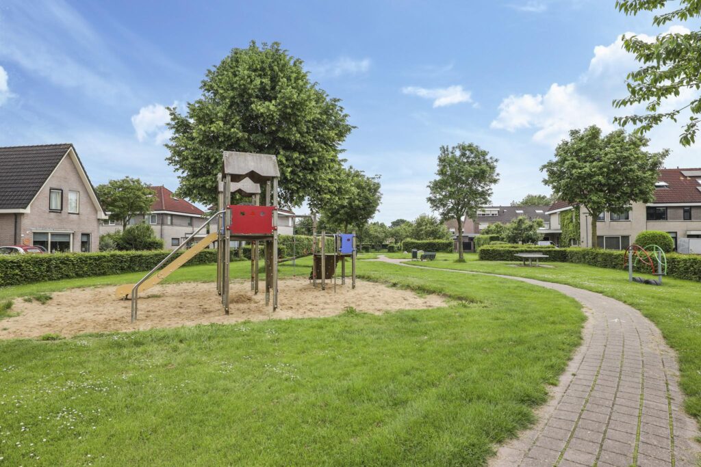Noemenswaardig is de tegenovergelegen speelweide waar kinderen naar hartenlust met de speeltoestellen kunnen spelen terwijl ouders op een bankje lekker bijkletsen. Groene hagen zorgen ervoor dat kinderen niet zomaar de weg oprennen, ook al is de straat autoluw te noemen. Kortom, hier geniet je het woongenot van een relatief jonge woonwijk waar je zomers de vogeltjes nog hoort fluiten.