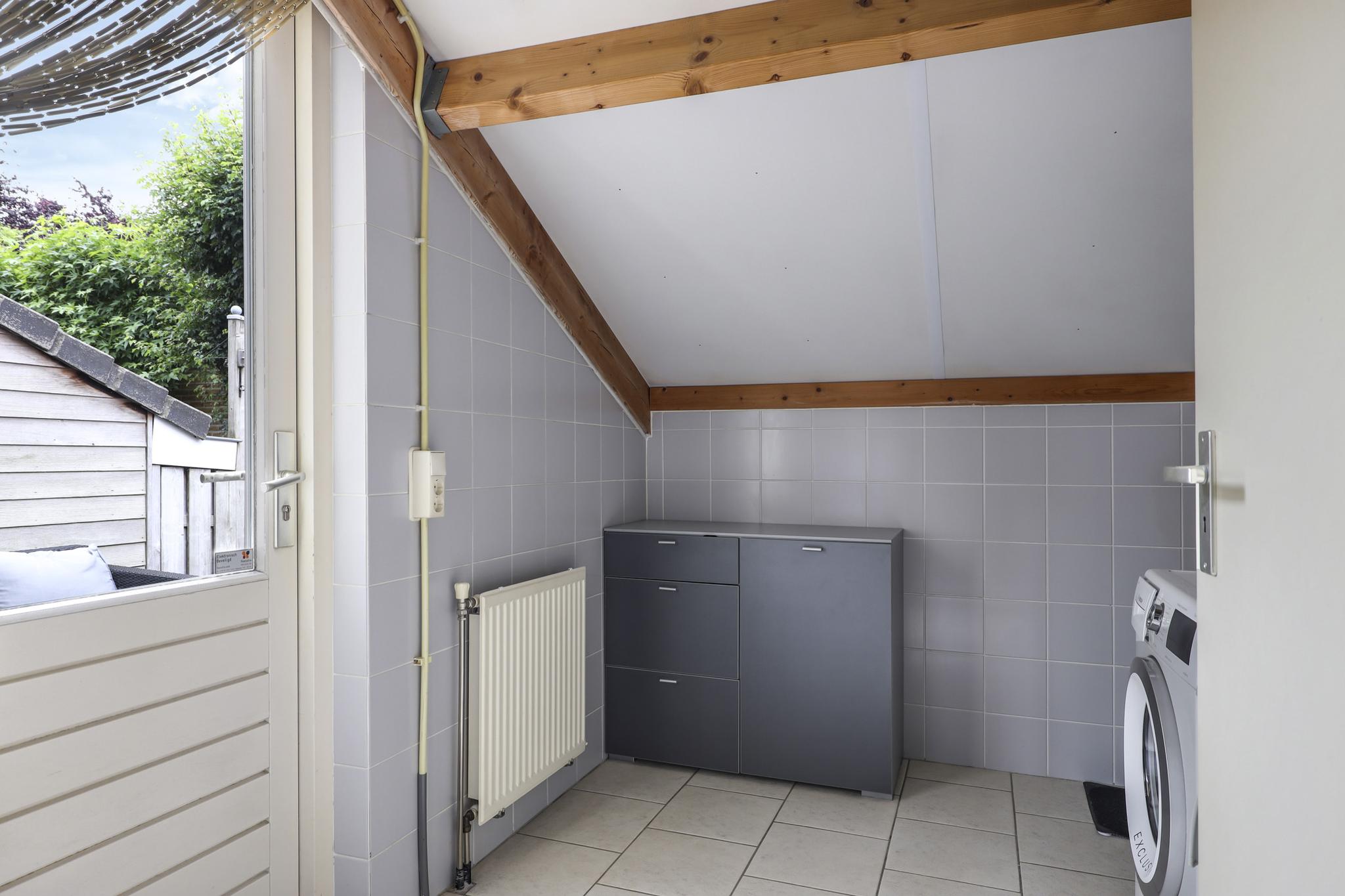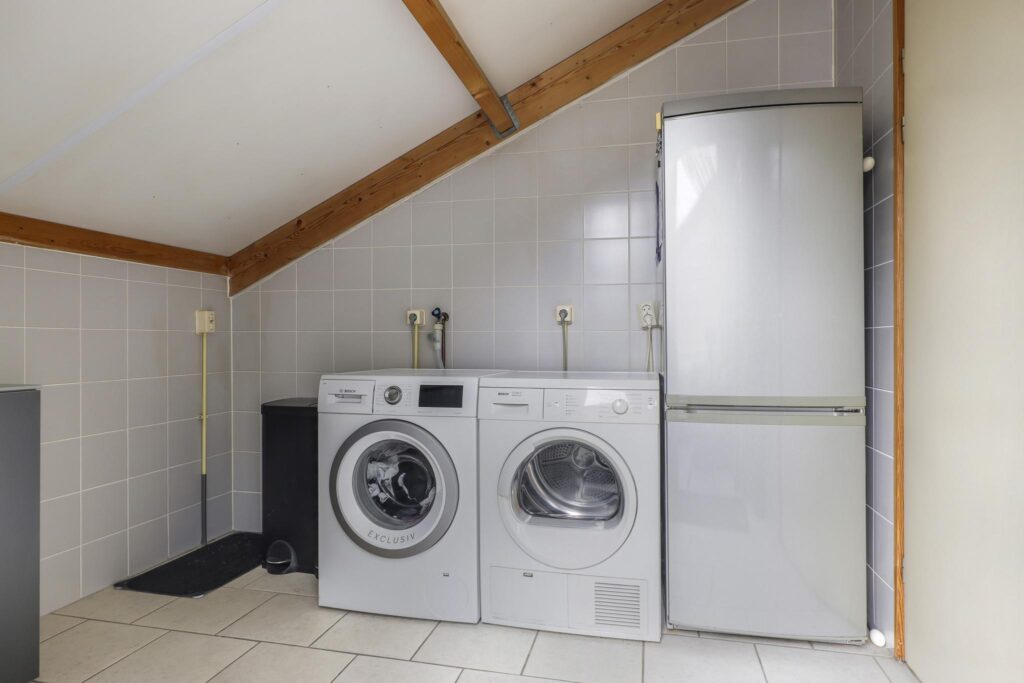 Via de keuken is de bijkeuken c.q. berging bereikbaar. Deze ruimte is erg praktisch te noemen aangezien je hier veel spullen kwijt kunt. We vinden hier tevens de wasmachine- en wasdroger-aansluiting terug. Ook is er plaats voor bijvoorbeeld een extra koel/vriescombinatie. Vanuit deze ruimte is de achtertuin bereikbaar.