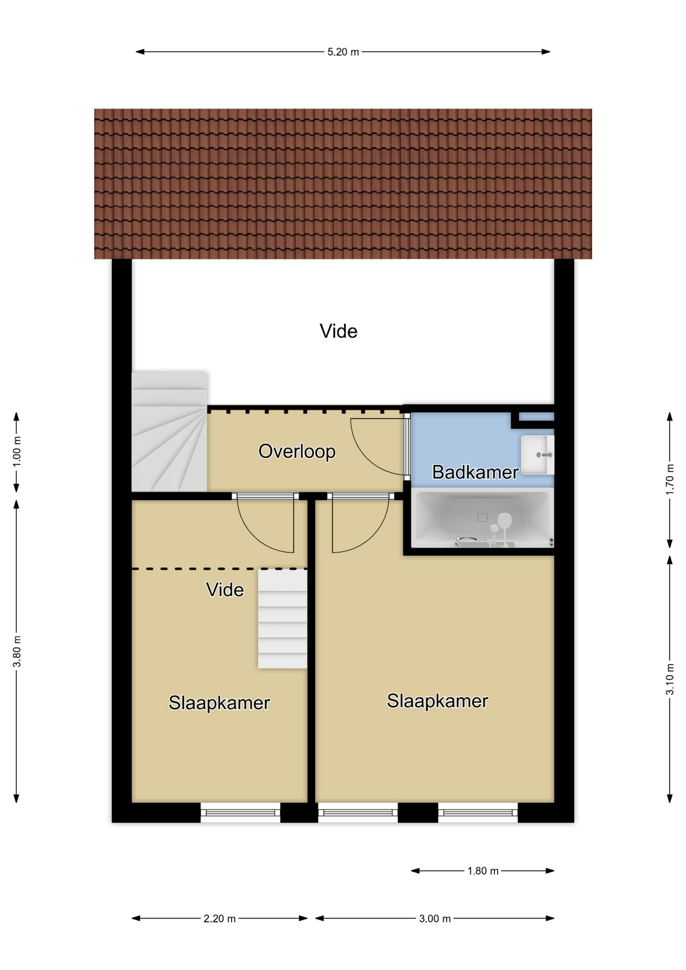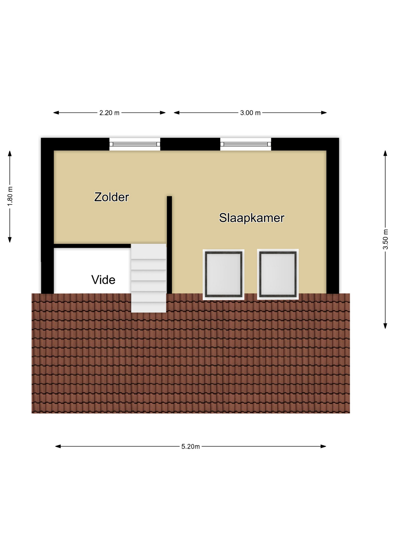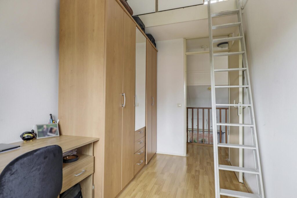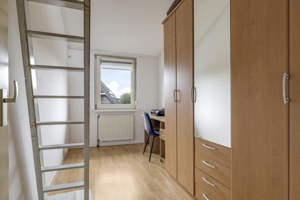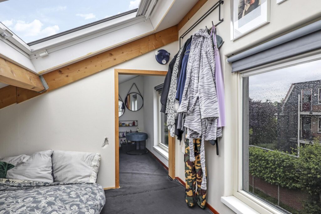Op de 2e slaapkamer is een rechte steektrap aanwezig die de zolder toegankelijk maakt. Ook hier zie je het vide-effect terug waardoor ook de zolder niet standaard te noemen is. De zolder kan gebruikt worden als slaapkamer waarbij wel rekening gehouden dient de worden met de steektrap en de lagere nok. Opvallend zijn de 2 grote dakramen welke extra zijn geplaatst, dit zorgt voor veel lichtinval en een ruimtelijker gevoel. Geen derde slaapkamer nodig? Dan is de zolder uitstekend te gebruiken voor het opbergen van de seizoensspullen.