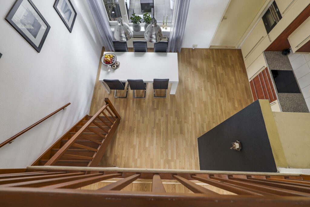 Quote van de makelaar: “Deze woning is allesbehalve standaard. De hoge plafonds, de vides de speelse indeling maken dit een verrassende woning. Desondanks is de woning nog steeds erg praktisch met onder meer een royale woonkamer en een handige bijkeuken. Ben jij benieuwd of deze woning jou ook gaat verrassen tijdens een bezichtiging? Wellicht zien wij je snel!”