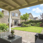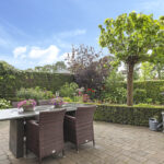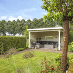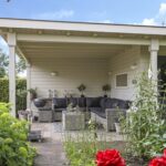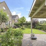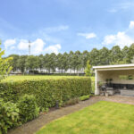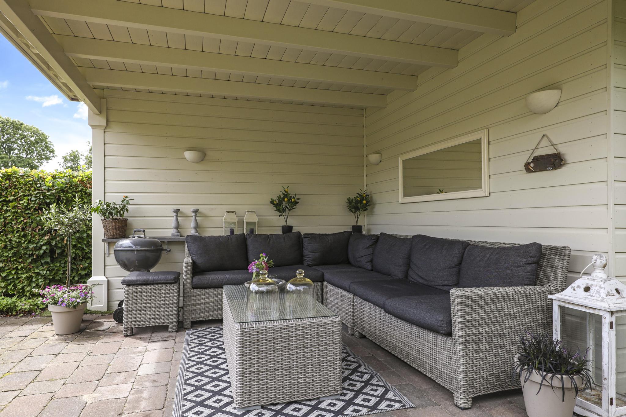 De zonnige achtertuin geniet van bijzonder veel privacy doordat er geen bebouwing achter de woning is gelegen. In de tuin staat een extra houten berging met eraan een sfeervolle veranda. Het perceel meet bijna 500m² en zorgt voor ruimte rondom de woning, waardoor je hier volledig van het buitenleven kan genieten.