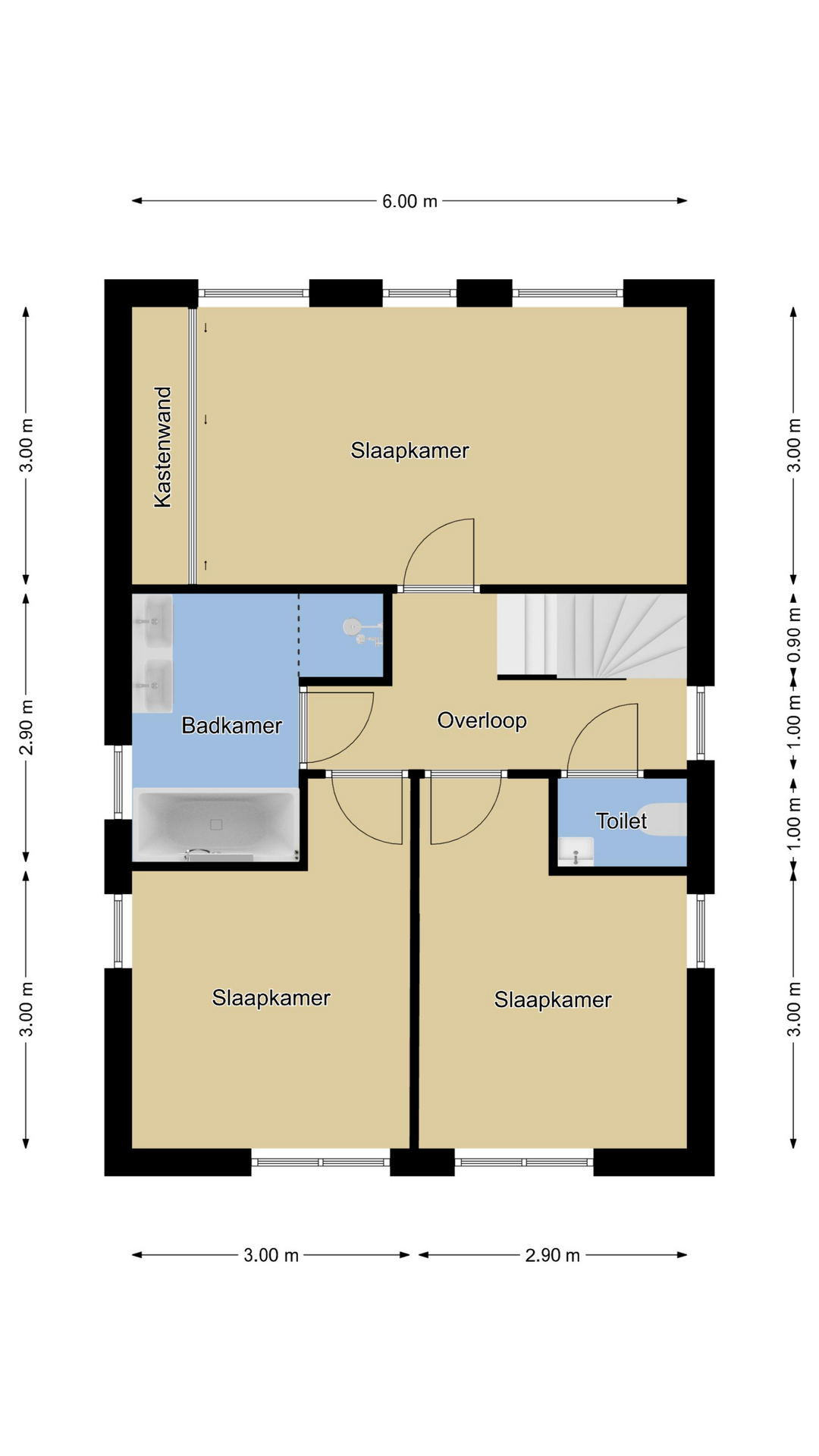 3 Slaapkamers waarvan 1 met vaste kastenwand