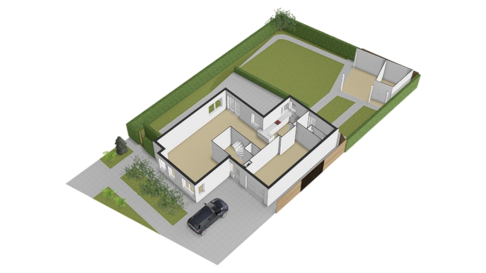 INPANDIGE GARAGE EN OPRIT MET CARPORT