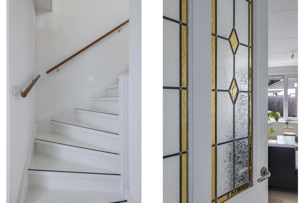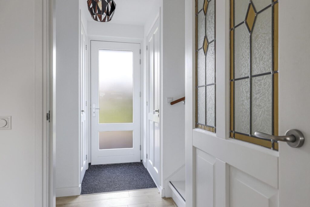 Stijlvolle paneeldeuren waarvan de haldeur met glas-in-lood