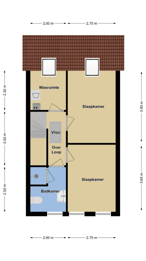 De 3e kamer is momenteel ingericht als waskamer. Een dakraam zorgt voor het nodige daglicht. Je kunt hier onder meer de wasmachine en wasdroger kwijt. Ook is op deze kamer de cv-ketel geïnstalleerd. De kamer leent zich ook goed als werk of logeerkamer.