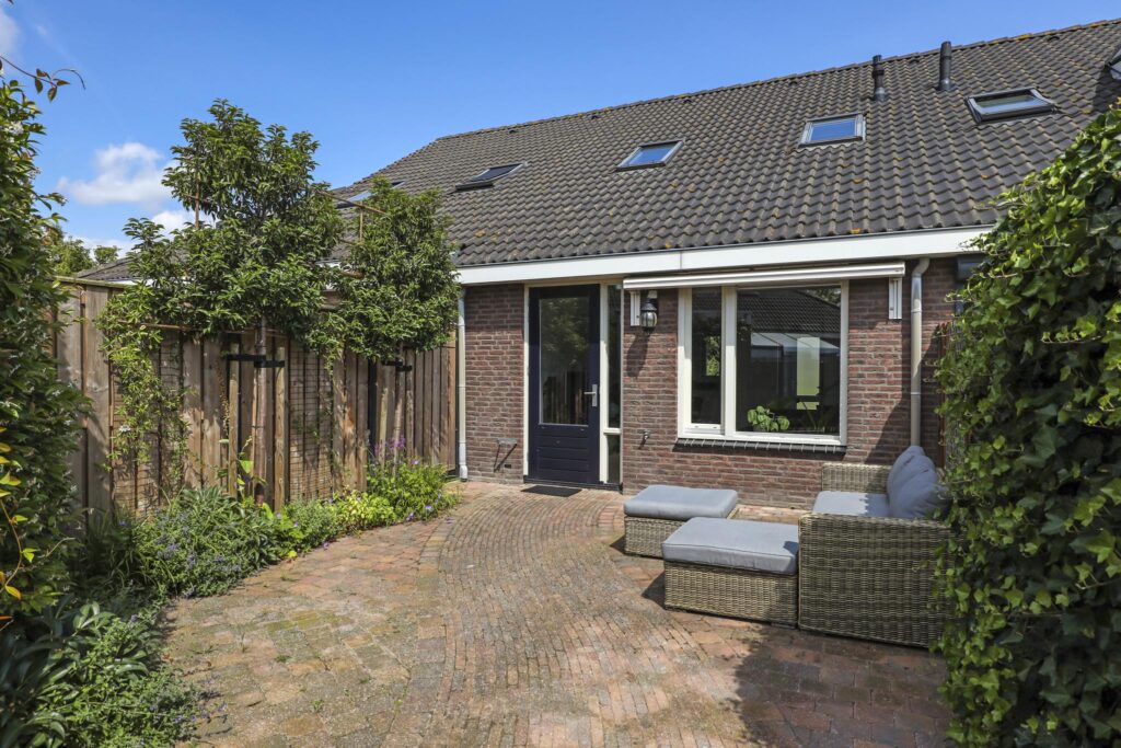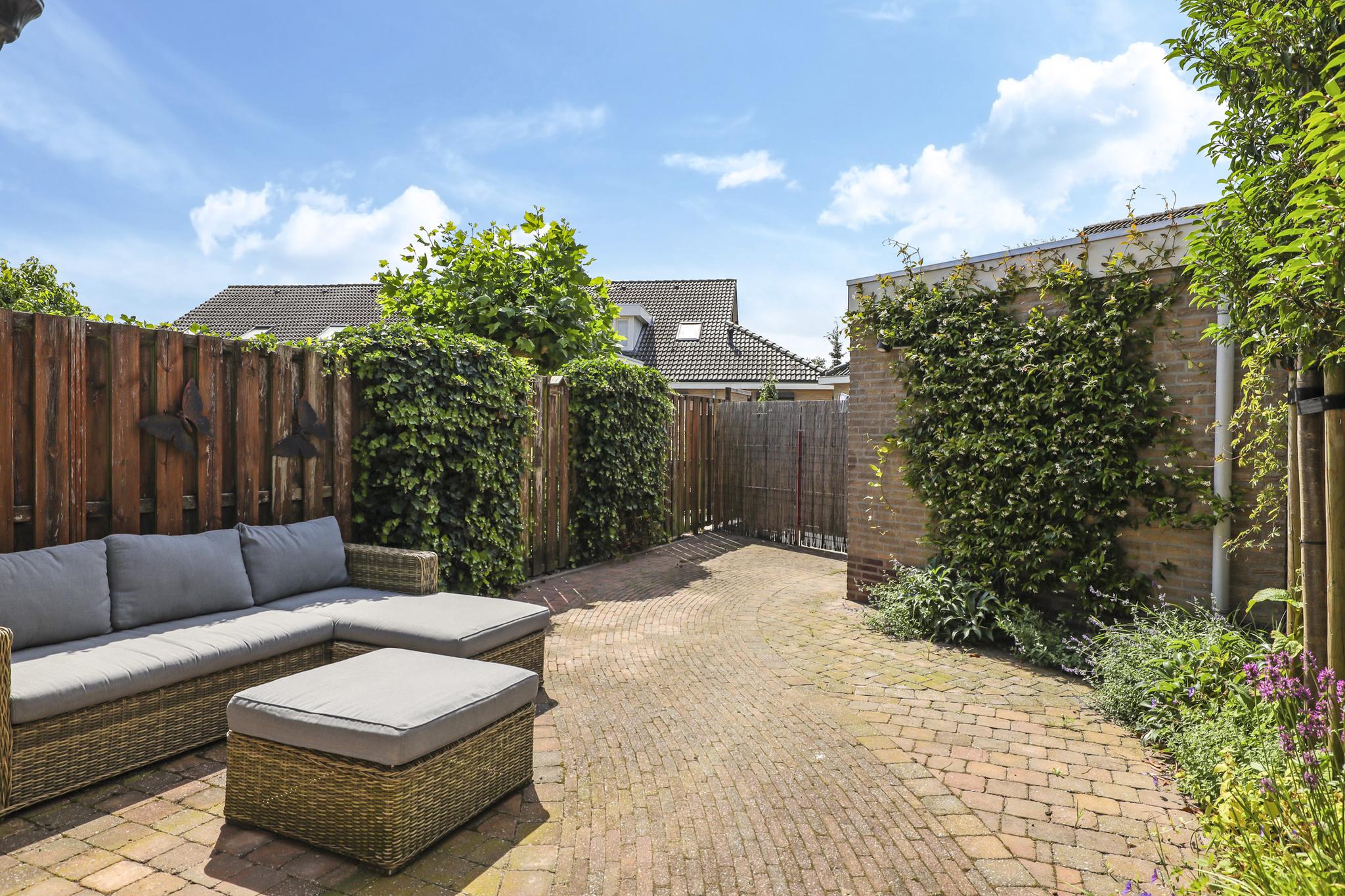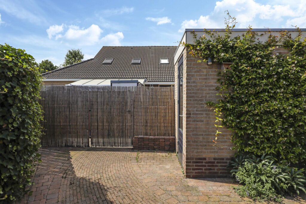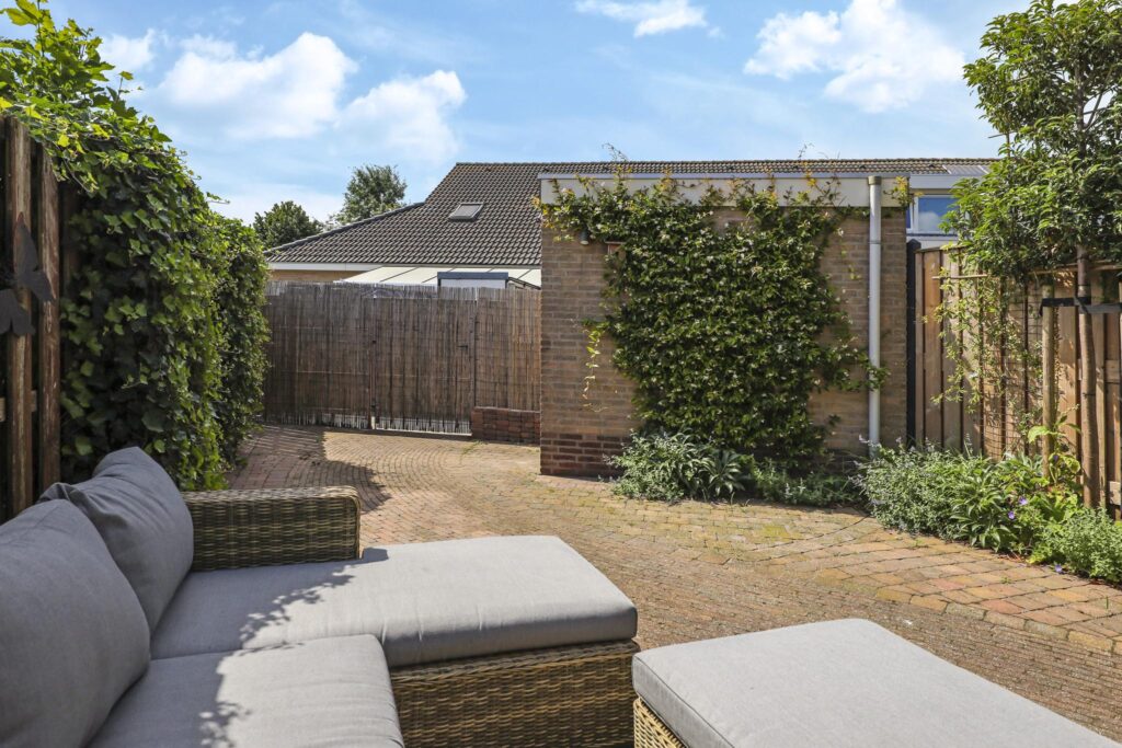De achtertuin heeft een knus en gezellig karakter. Doordat de tuin nagenoeg geheel bestraat is, kunnen we de tuin onderhoudsarm noemen. Hierdoor heb je juist tijd over om lekker van de tuin en de zon te genieten. Een groene erfafscheiding enerzijds en een groenborder anderzijds bieden wel een groene uitstraling. Doordat de achtergelegen woningen ‘laagbouw’ zijn, is er weinig tot geen inkijk en geniet je dus relatief veel privacy. Aan de achtergevel is zonwering geplaatst waardoor je hier op de warme zomerdag een fijne schaduwplek kan vinden.