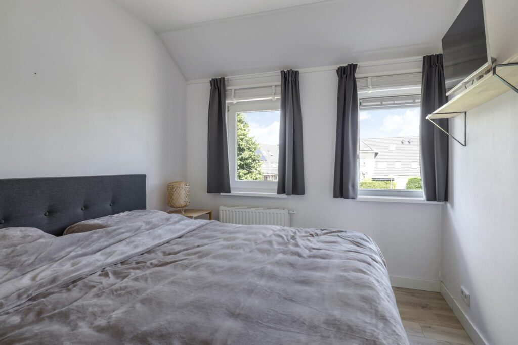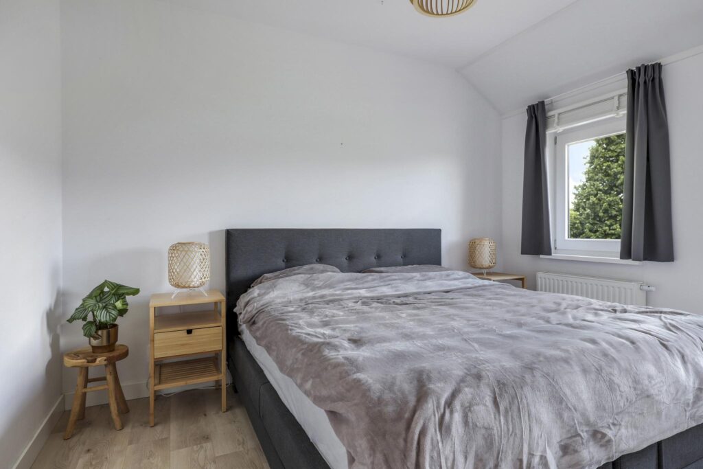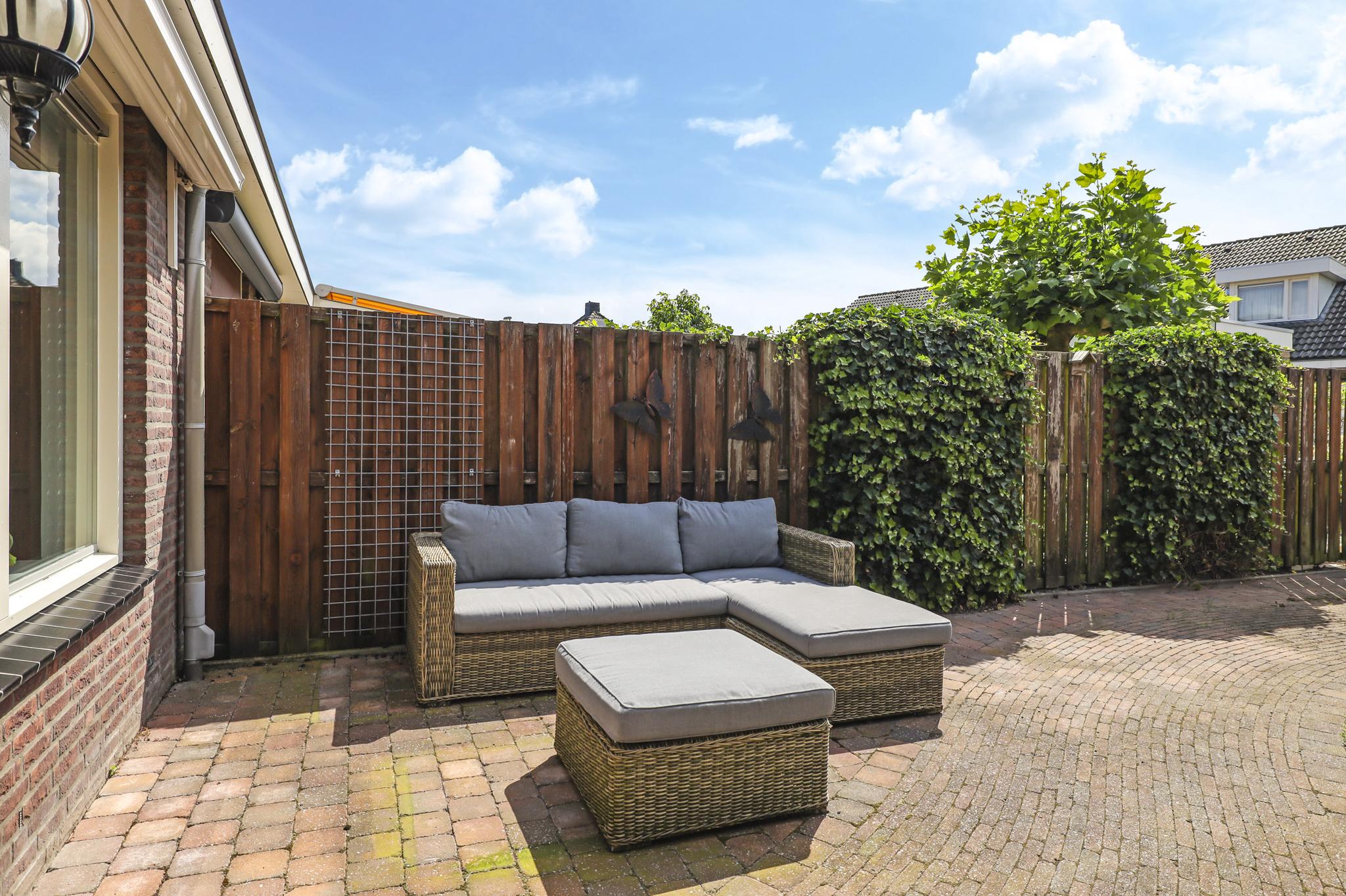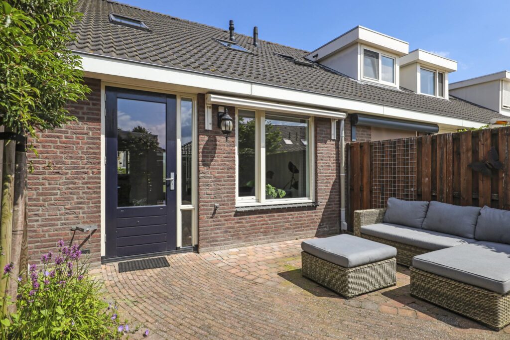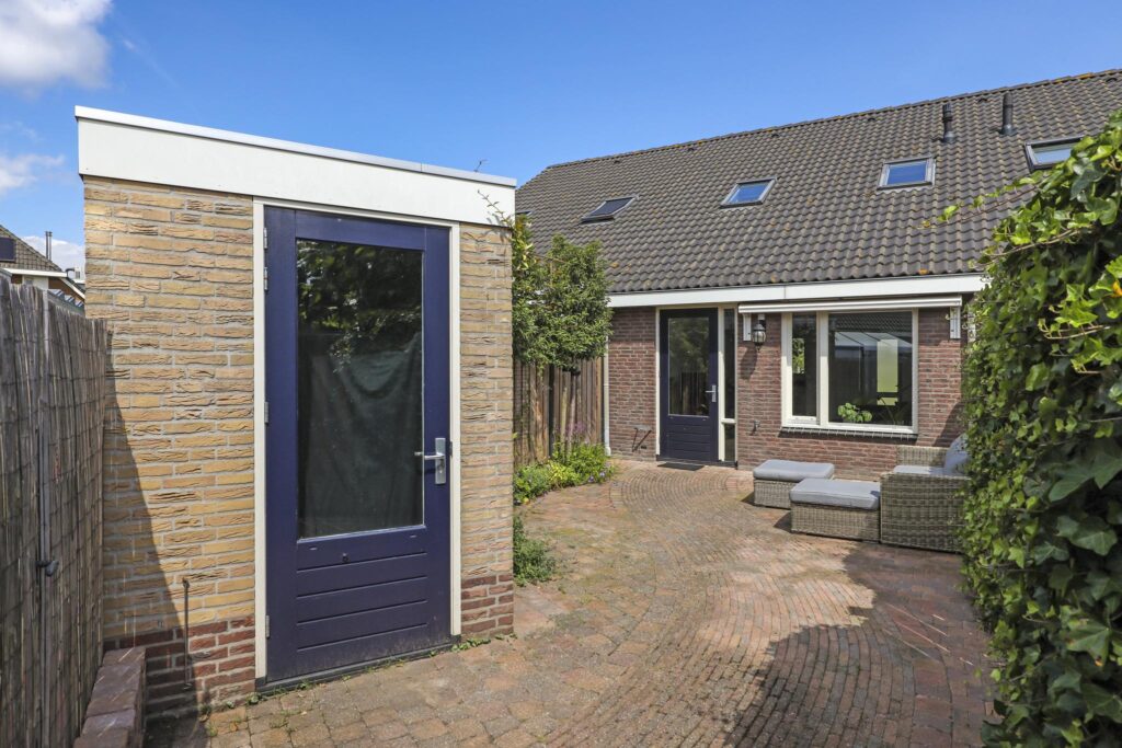 De achtertuin heeft een knus en gezellig karakter. Doordat de tuin nagenoeg geheel bestraat is, kunnen we de tuin onderhoudsarm noemen. Hierdoor heb je juist tijd over om lekker van de tuin en de zon te genieten. Een groene erfafscheiding enerzijds en een groenborder anderzijds bieden wel een groene uitstraling. Doordat de achtergelegen woningen ‘laagbouw’ zijn, is er weinig tot geen inkijk en geniet je dus relatief veel privacy. Aan de achtergevel is zonwering geplaatst waardoor je hier op de warme zomerdag een fijne schaduwplek kan vinden.
