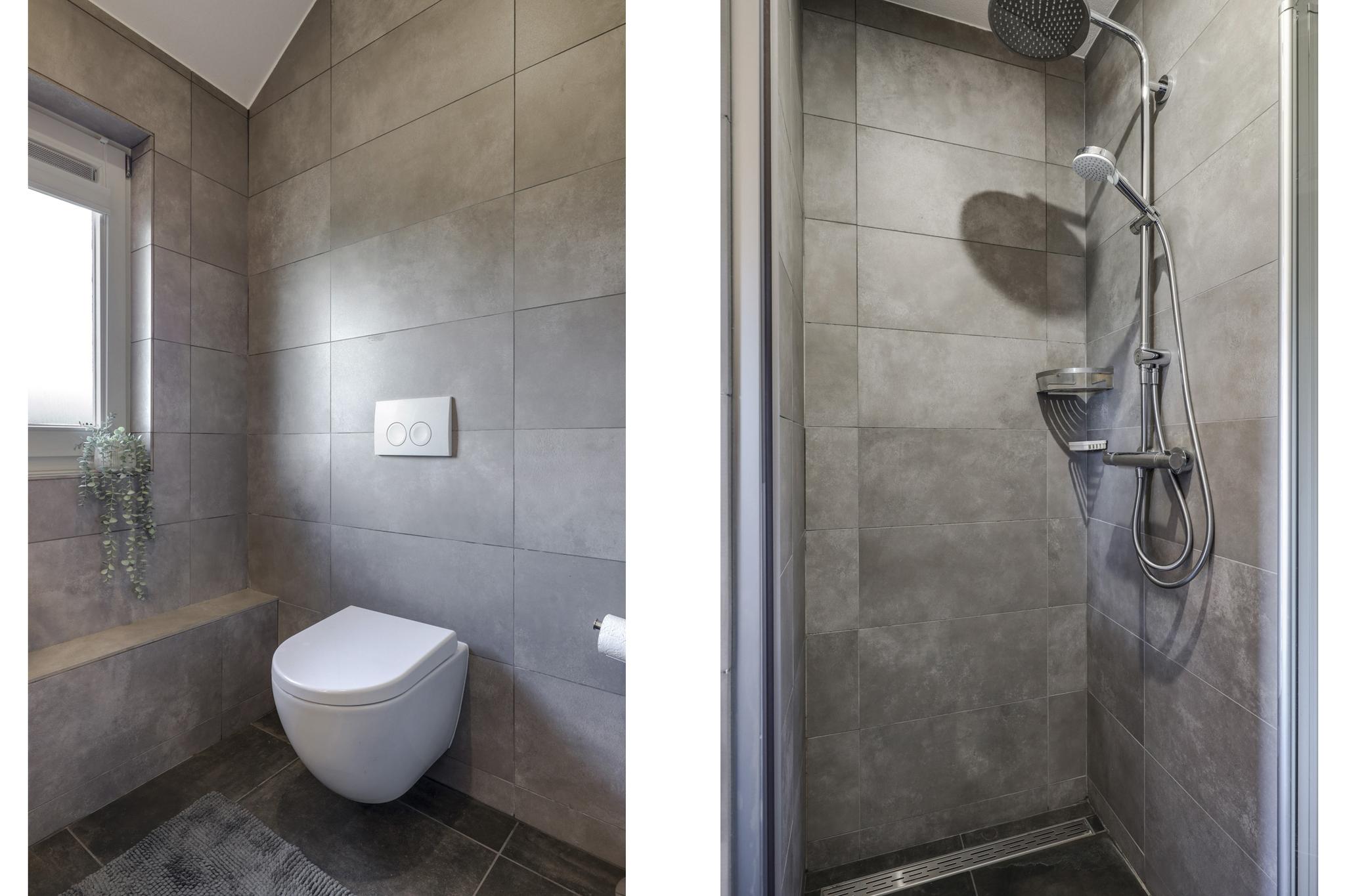 Badkamer met inloopdouche, een 2e toilet en een wastafelmeubel