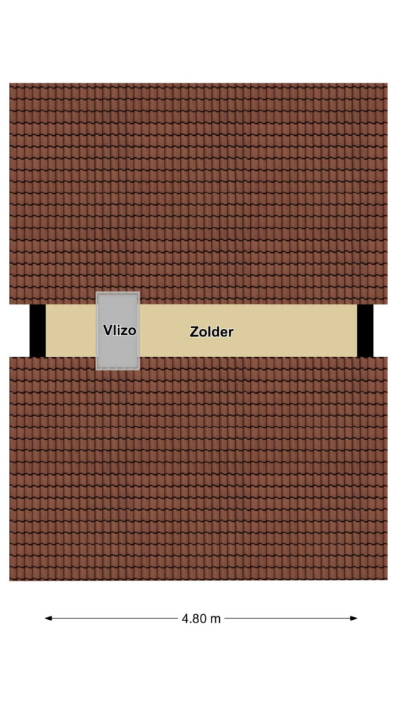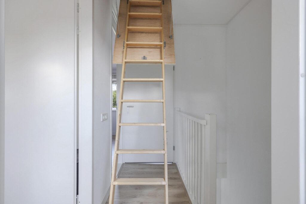 Met een vlizotrap op de overloop bereik je de zoldervliering. Met een nokhoogte van 1,4 meter kun je hier gehurkt ‘lopen’ doordat de gehele vliering is bevloerd. Deze verdieping is dan ook zeer geschikt voor het opbergen van vakantie- en seizoensspullen.