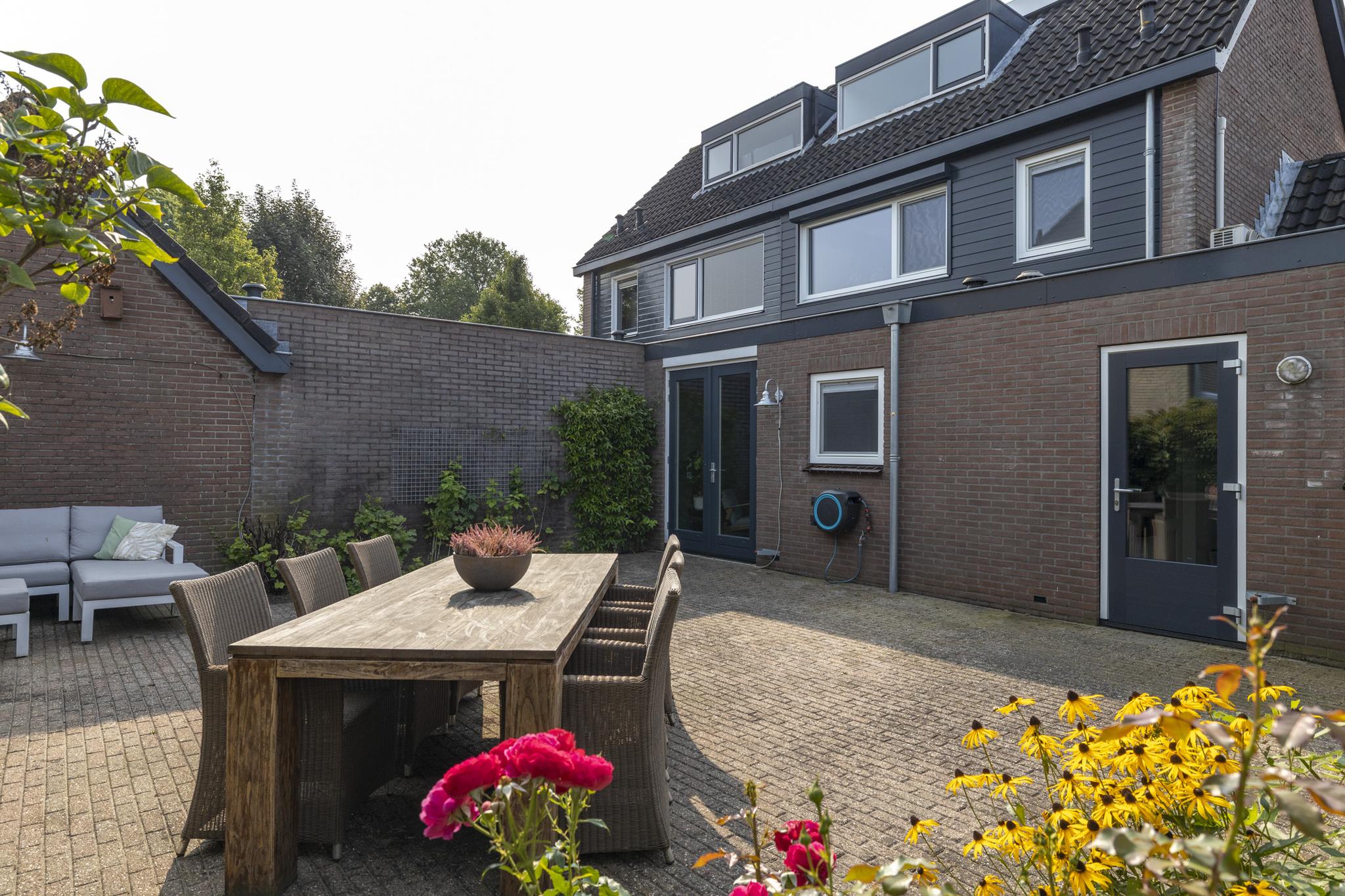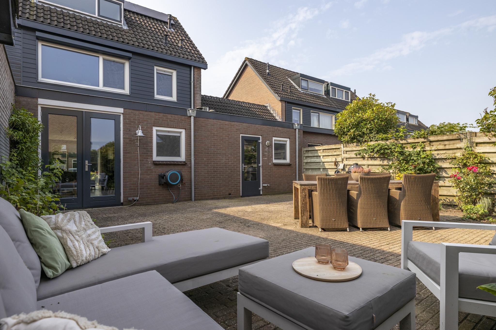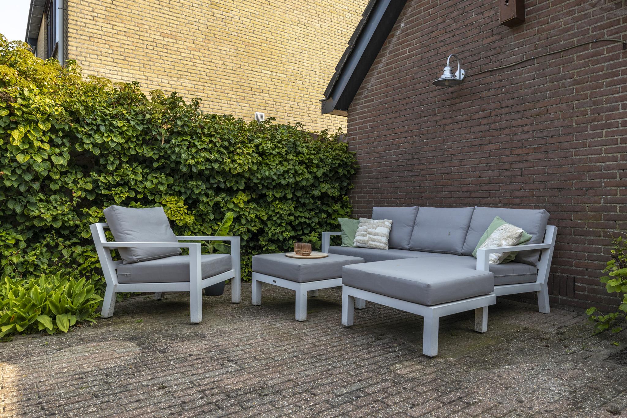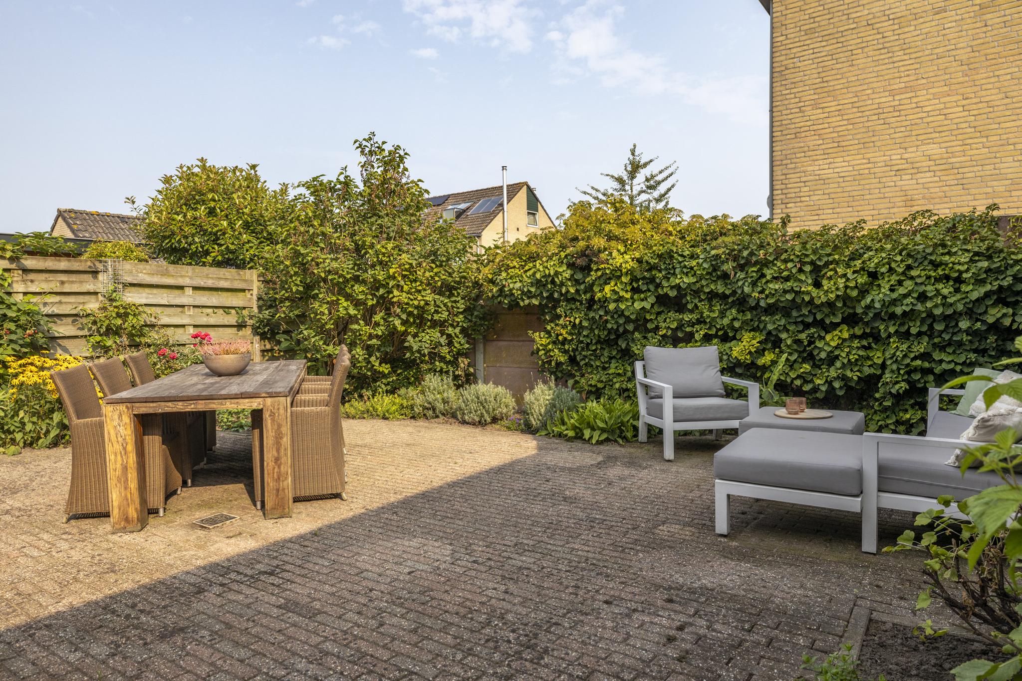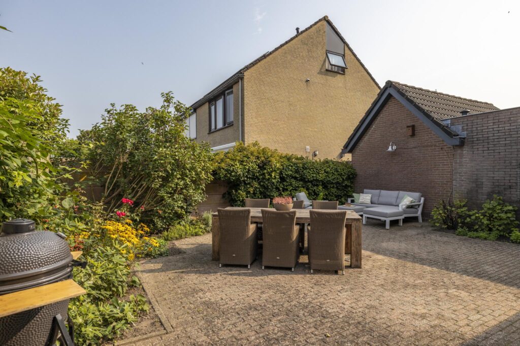 De achtertuin biedt een heerlijk buitenruimte waar je veel kanten mee op kunt. Het heeft een mooi, vierkant formaat (9m bij 9m) waardoor je verschillende zithoeken kunt creëren. Ook is er dan nog steeds ruimte voor bijvoorbeeld een grote trampoline. De tuin is nagenoeg geheel bestraat met langs de randen enkele borders met planten die voor een groen karakter zorgen. Verder is de tuin nagenoeg onderhoudsarm waardoor je juist tijd over houdt om van het buitenleven te genieten.
