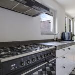 De keuken heeft dubbele deuren naar het buitenterras waardoor je op een zomers dag ook lekker buiten kunt tafelen.
