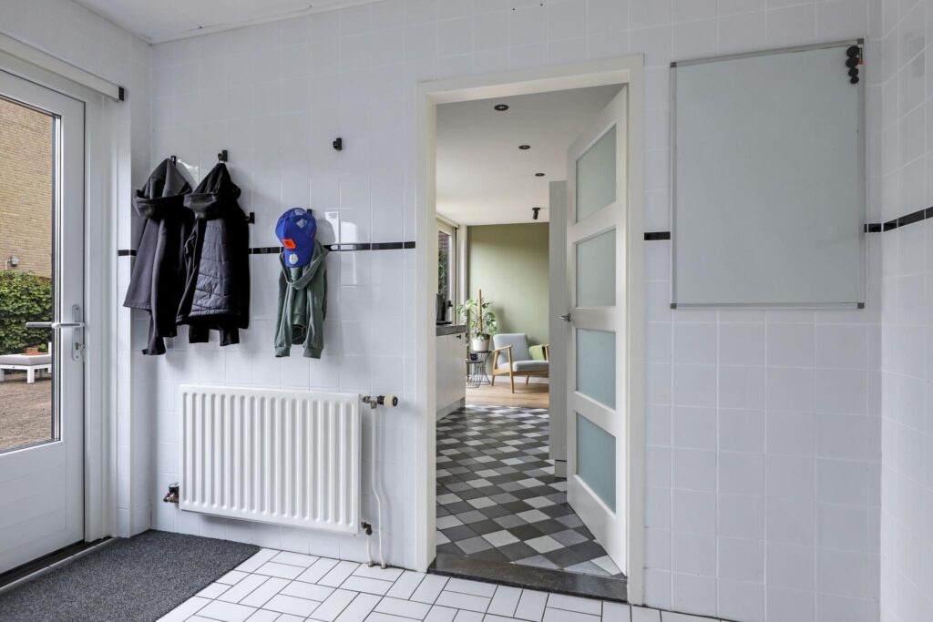 Een fijne hal/entree zorgt ervoor dat het hier prettig binnenkomen is. De vernieuwde voordeur en het raam ernaast zorgt voor lichtinval. Een designradiator kleedt de hal aan. Tevens vinden we hier een uitgebreide en moderne groepenkast.