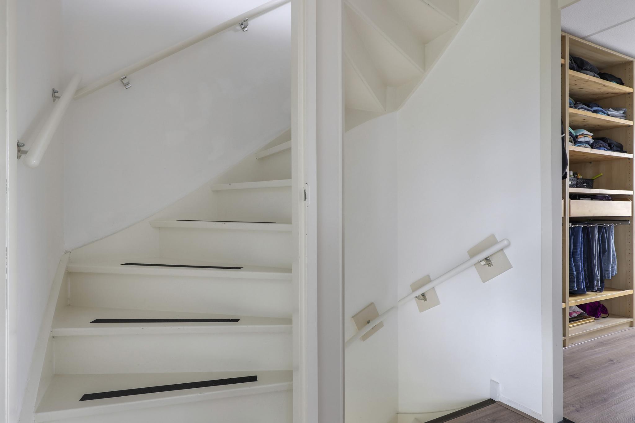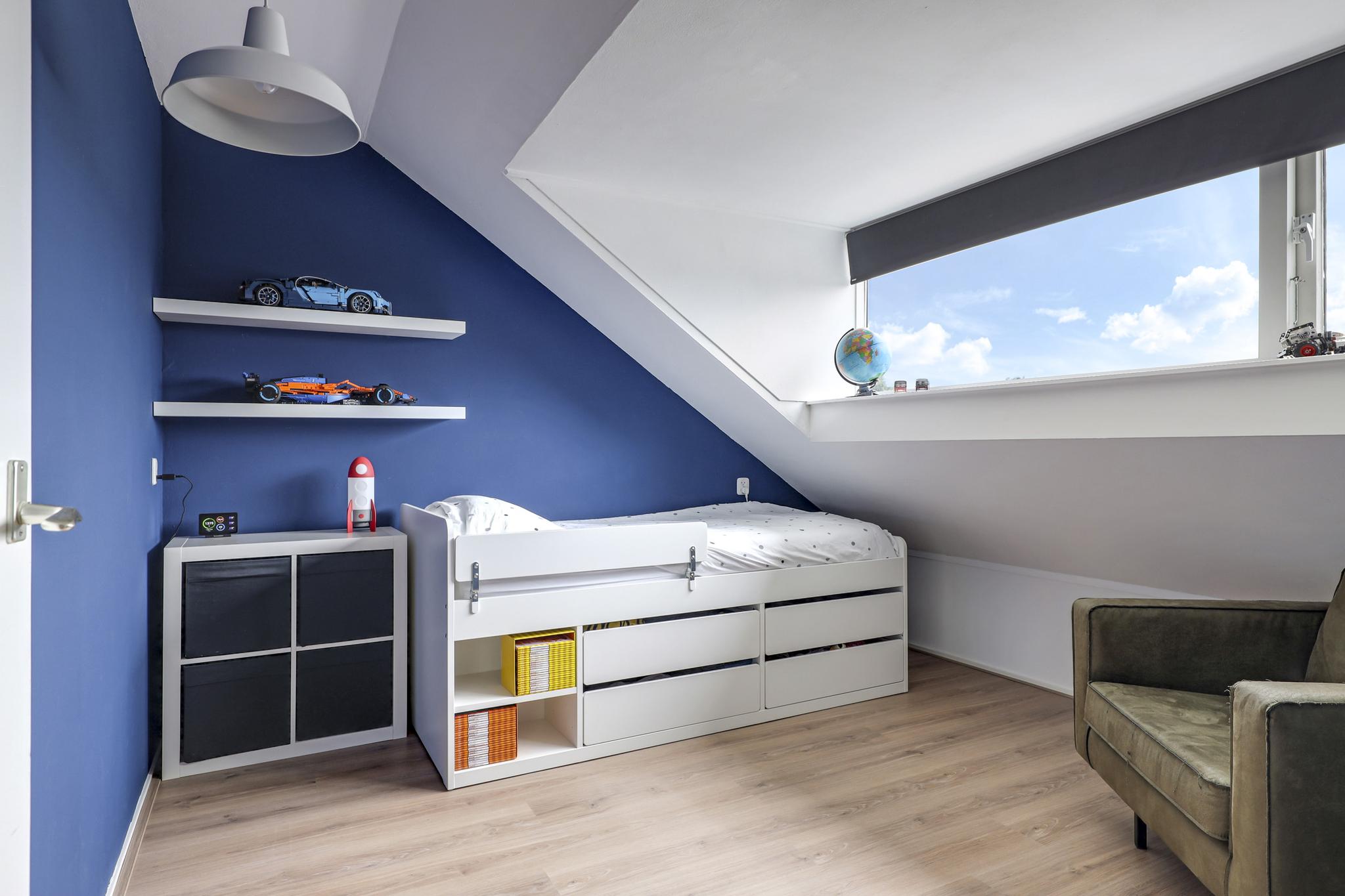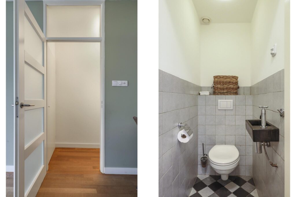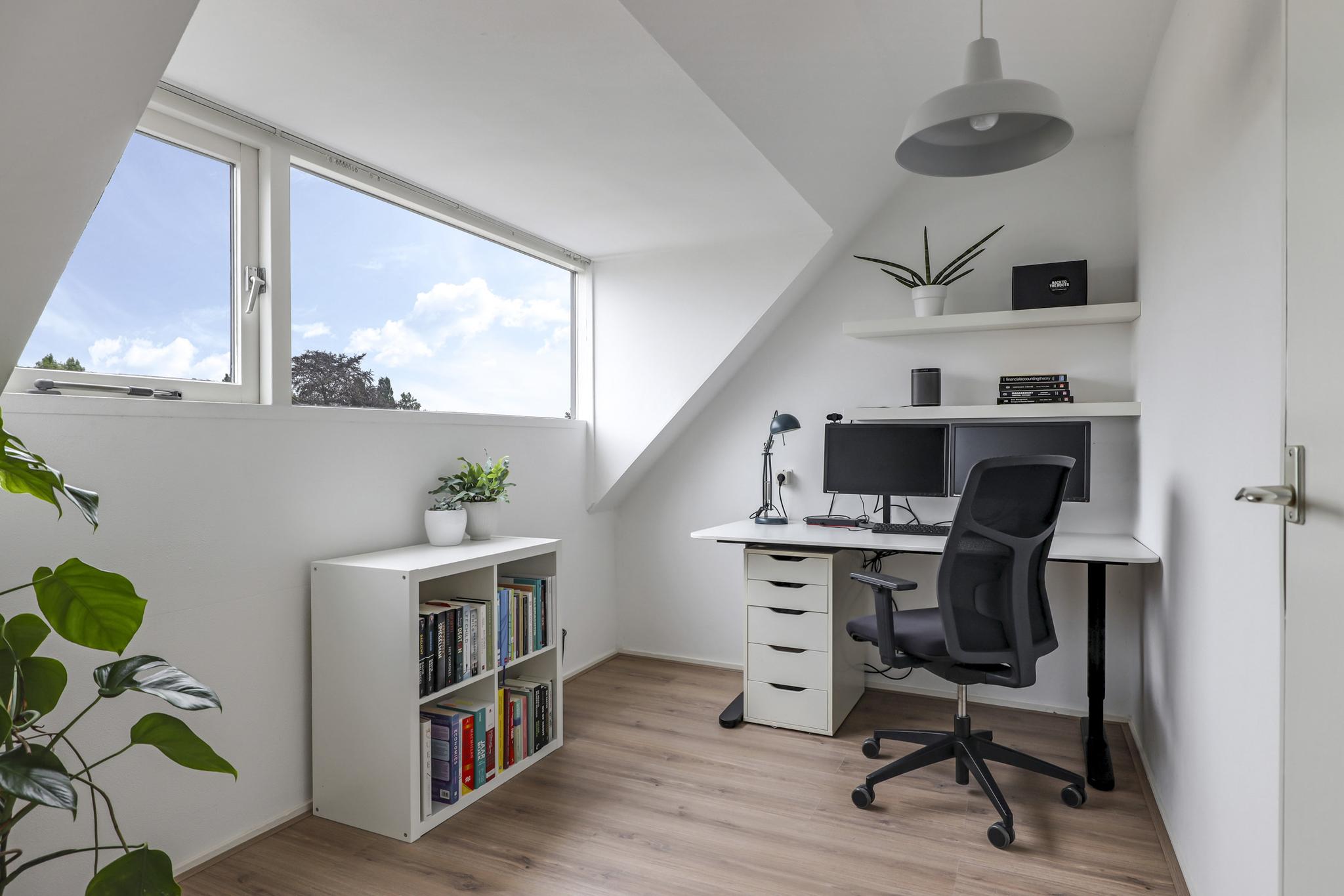 De trap naar de 2e verdieping is op de overloop af te sluiten met een deur. Dit zorgt voor een extra ‘geluidsbuffer’ met de 2e verdieping waar nog 2 slaapkamers te vinden zijn. Deze slaapkamers hebben beiden een grote dakkapel hetgeen voor flink wat extra leefruimte en daglicht zorgt. Gemeten vanaf 1,5 meter hoogte tellen de kamers respectievelijk 9m2 en 8m2. Het afwerkingsniveau is ook hier erg verzorgd met strakke wandafwerking en een laminaatvloer die naadloos van de ene kamer doorloopt naar de andere. Mocht je veel vanuit huis werken, dan zou je hier ook prima een werkkamer kunnen creëren.