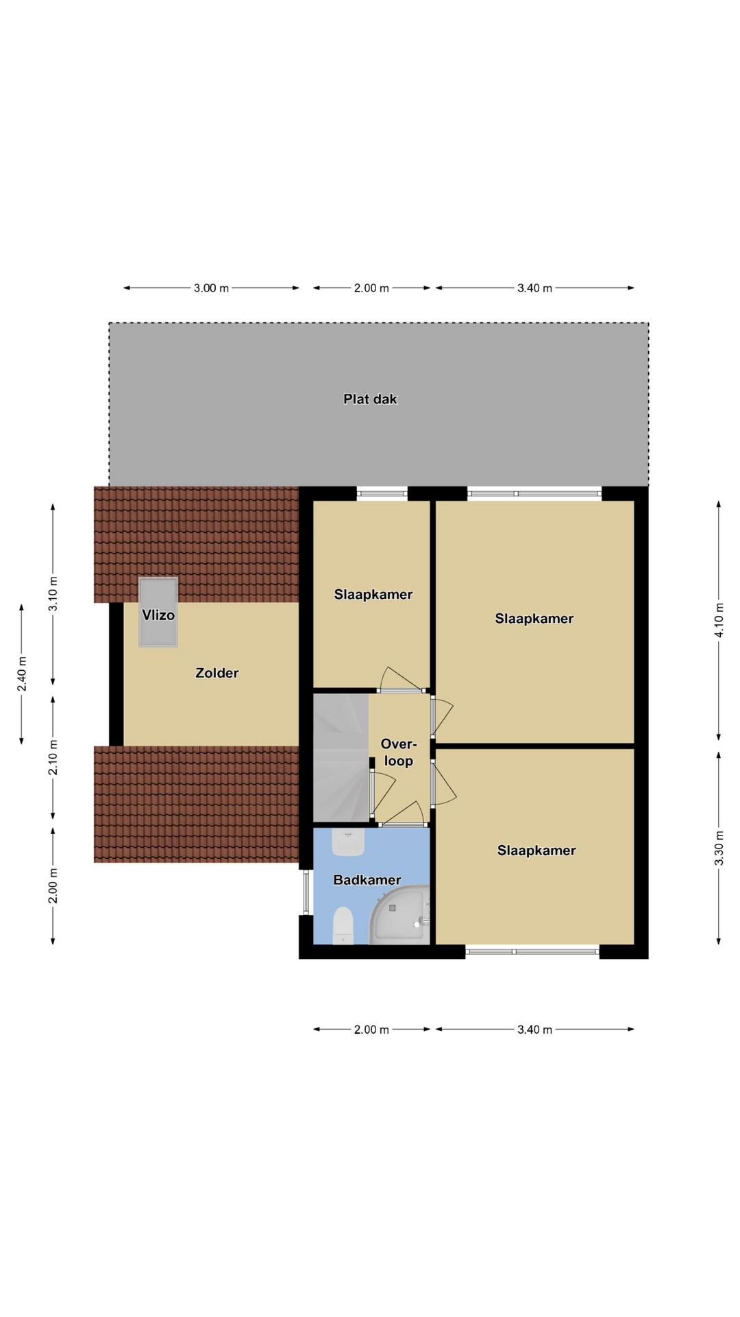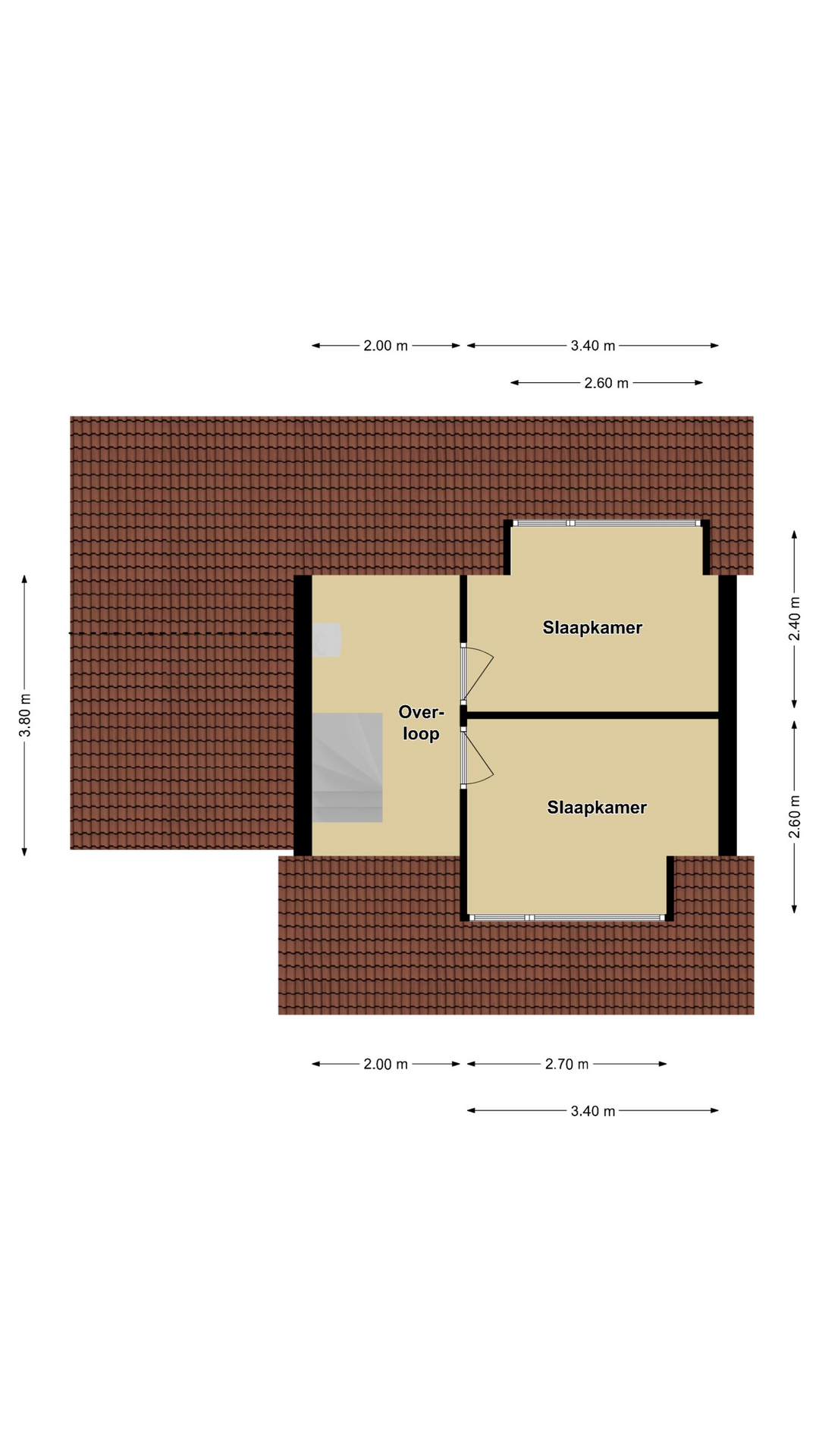 2 Slaapkamers, beiden met een dakkapel en knieschot opbergruimte.