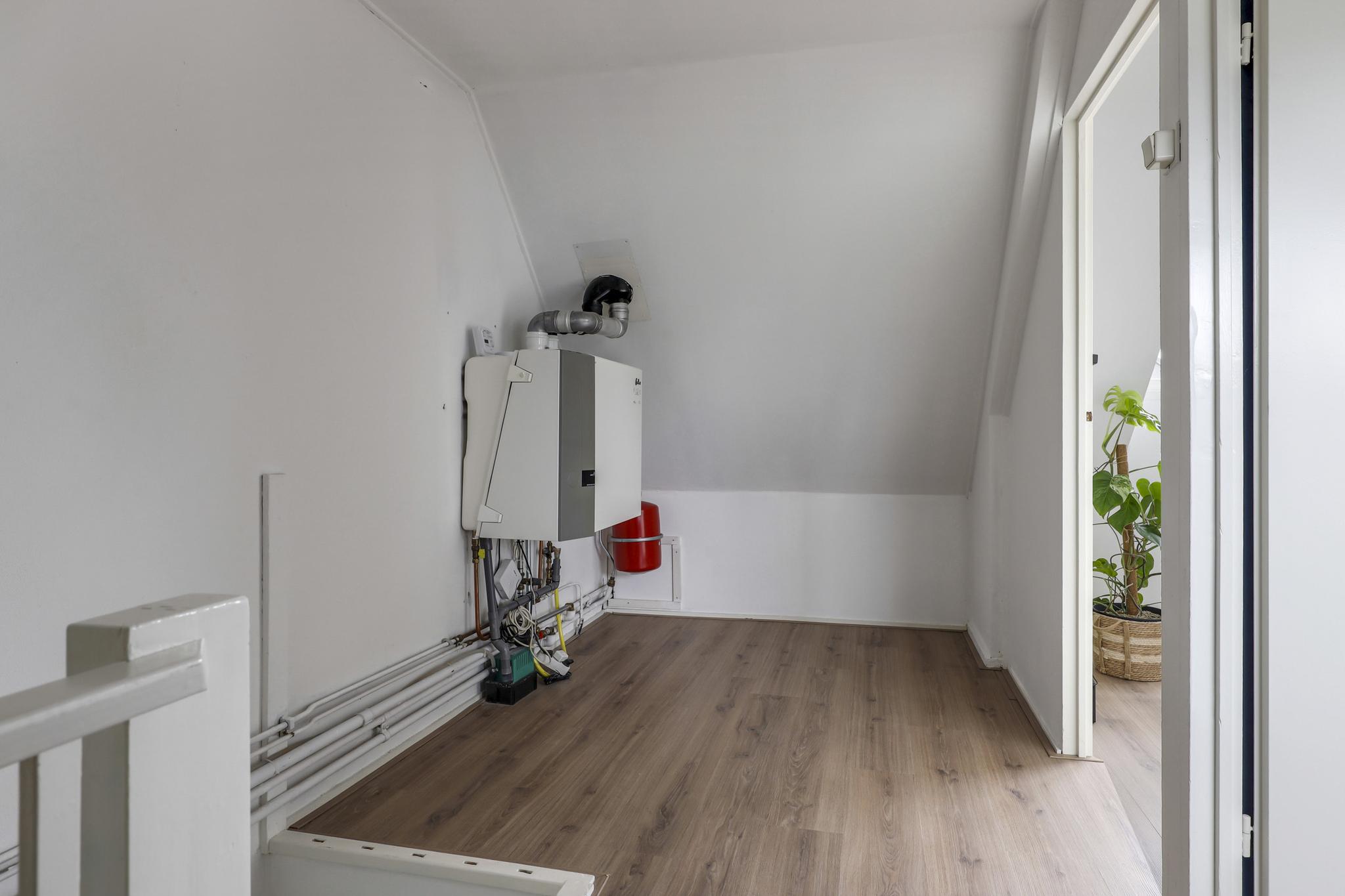 Ruime voorzolder met CV-ketelopstelling en knieschot opbergruimte
