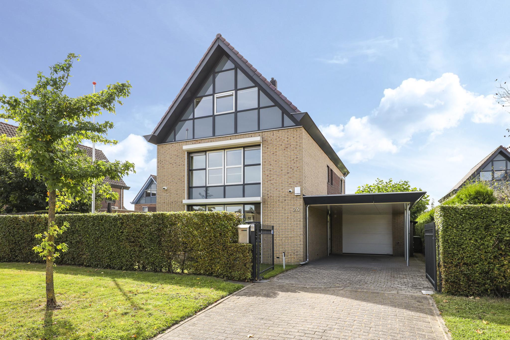 Bijzonder fraai en stijlvol gemoderniseerd VRIJSTAAND WOONHUIS (2000), bestaande uit 3 royale woonlagen en een riante, INPANDIGE GARAGE die volledig geïsoleerd en aan de achterzijde royaal uitgebouwd is. Vóór de garage is nog een CARPORT, in de stijl van de woning gerealiseerd.