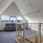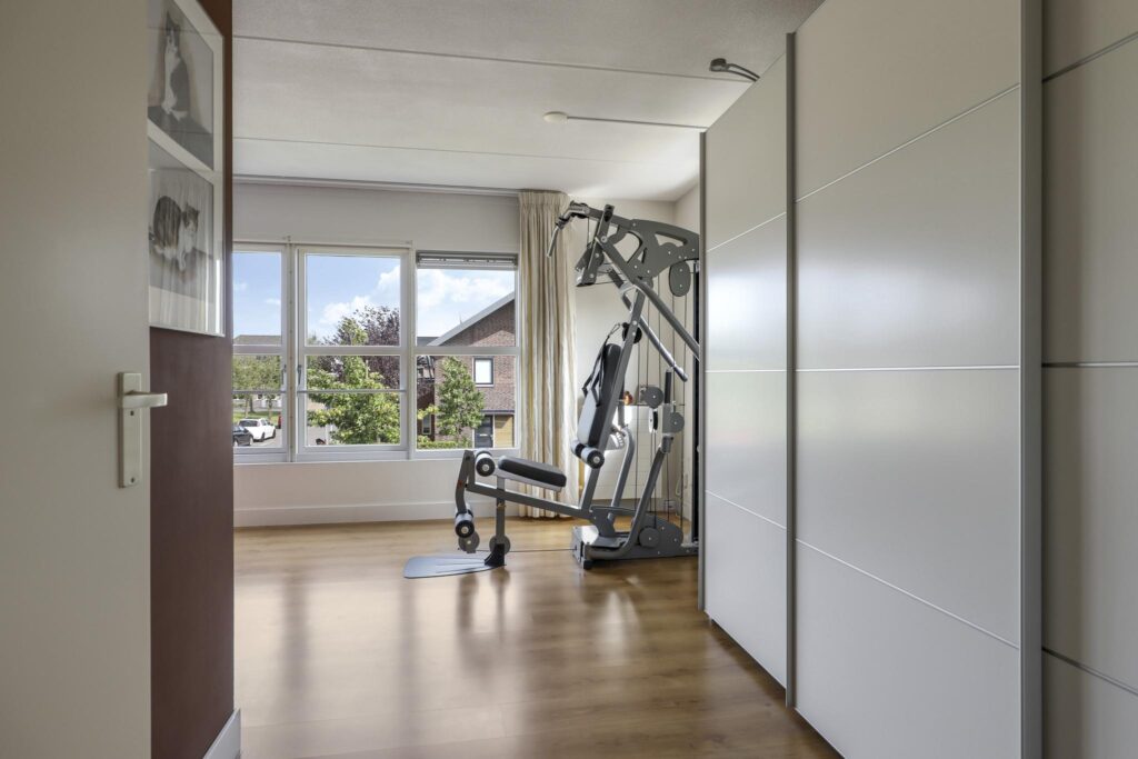 Loop je de trap verder op naar de 2e verdieping, dan wordt je verrast door de grote ruimte die wordt gecreëerd door de hoge nok (bijna 4 meter hoog) en het grote glasoppervlak. Het is dan ook een volwaardige woonlaag die volop potentie biedt als leefruimte. De ruimte aan de achterzijde is multifunctioneel te benutten en zou een heerlijke werkplek of gym kunnen zijn. Aan de voorzijde is een 4e slaapkamer van ca. 12m2 groot gecreëerd. Dit is gemeten vanaf 1,5 meter hoogte en is dus eigenlijk nog groter. Zo’n zelfde slaapkamer zou je dus ook nog aan de achterzijde kunnen maken.