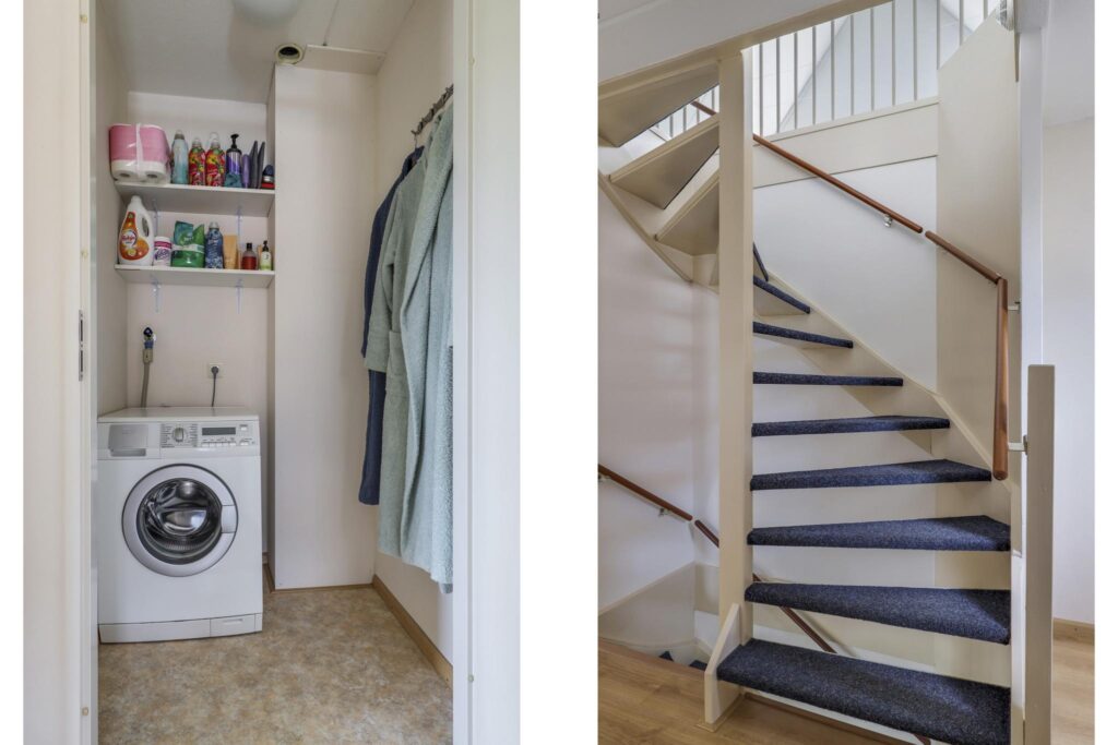 Erg praktisch is de vaste inloopkast op de overloop. Dit is tevens de wasruimte waar je zowel een wasmachine als een wasdroger (op elkaar) kunt plaatsen. Ook biedt het opbergruimte voor bijvoorbeeld handdoeken en bedlinnen.