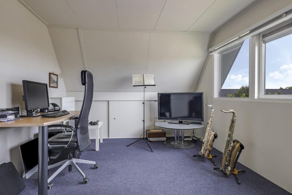 Je zou kunnen zeggen ‘een garage is een garage’ maar dat is hier tekort door de bocht. Deze inpandige garage, die via de keuken van binnenuit te bereiken is, is aan de achterzijde royaal uitgebouwd. Door de aanbouw is de garage qua formaat verdubbeld en telt maar liefst ca. 37 vierkante meters. Bovendien is de garage volledig geïsoleerd (vloer, wanden, plafond, beglazing en sectionaaldeur), voorzien van verwarming en heeft het een hoog plafond (2,65 meter hoog). Hierdoor biedt het perspectief om er ook (deels) een andere bestemming aan te geven. Tegenwoordig worden er immers nog maar weinig auto’s een garage in gereden en vindt je vóór de garage een volwaardige carport waar een auto mooi beschut kan staan.