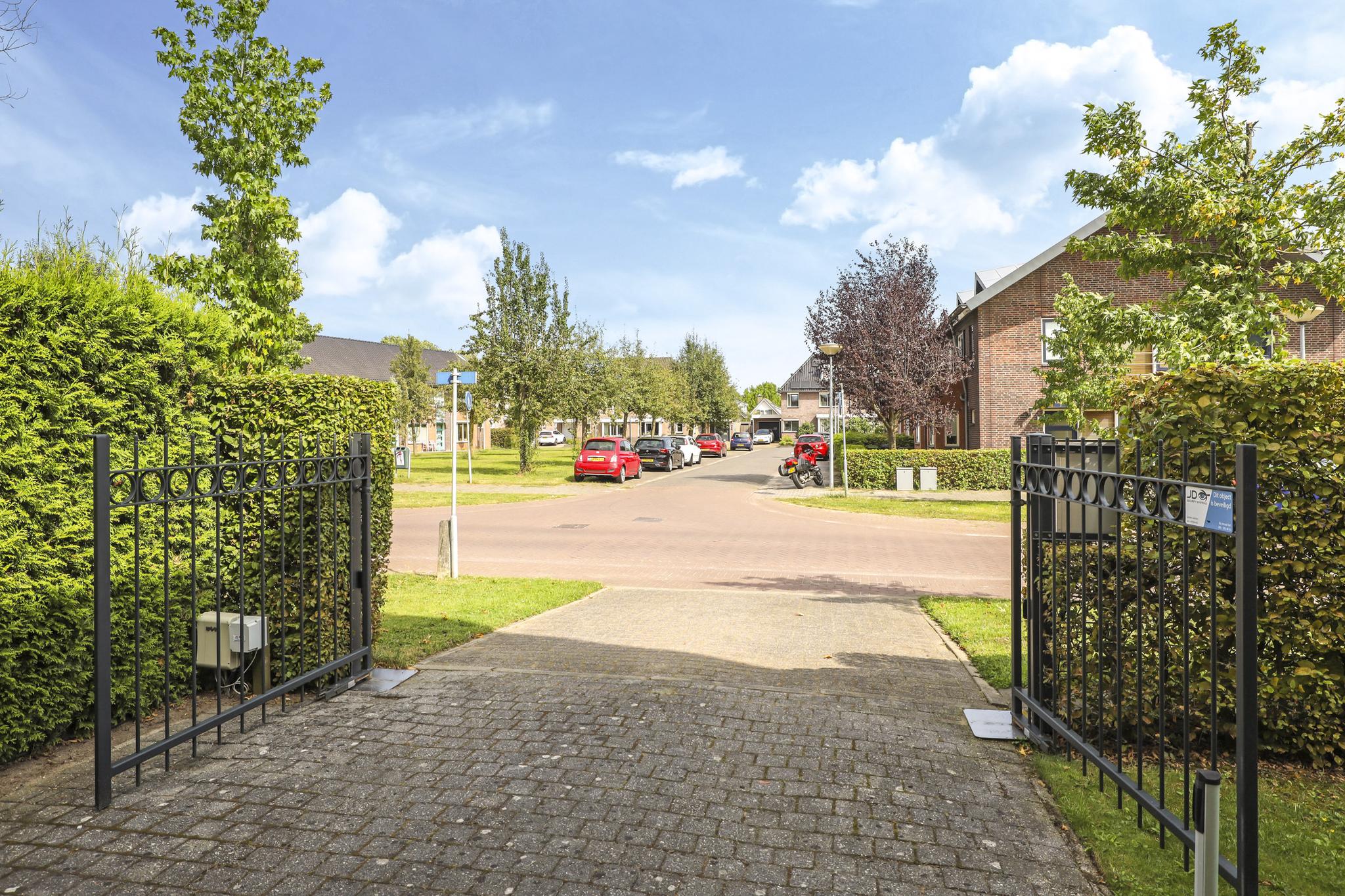 Noemenswaardig is de stalen poort die de oprit afsluit van de openbare weg. Deze is elektrisch en op afstand te bedienen. Nog een pluspunt is de carport van 6 meter lang. Hier kun je een auto beschut parkeren. Bovendien sta je bij de voordeur altijd droog. Opvallend is het plafond van de carport. Deze is strak en zeer verzorgd afgewerkt en in de lak gezet. Inbouwspots zorgen in het donker voor sfeerverlichting.