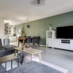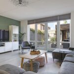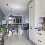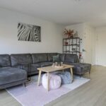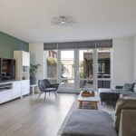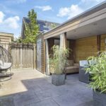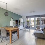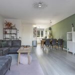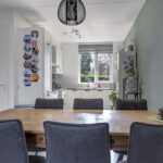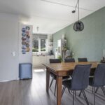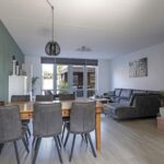 Door de aanbouw van 2,4 meter is de begane grond meer dan 10 meter lang geworden. Die extra vierkante meters aan woonoppervlak maken de woonkamer aanzienlijk groter hetgeen je weer extra mogelijkheden biedt bij het uitzoeken van meubels. Je kunt er immers met gemak een grote hoekbank en een lange eettafel kwijt, zonder dat het daardoor gelijk ten koste gaat van het ruimtelijke gevoel. Dit komt ook doordat de woning hoge plafonds heeft en een grote glaspui in de achtergevel met dubbele terrasdeuren. Bovendien heb je geen ruimteverlies door radiatoren want die zijn komen te vervallen toen er is gekozen voor vloerverwarming op de begane grond.