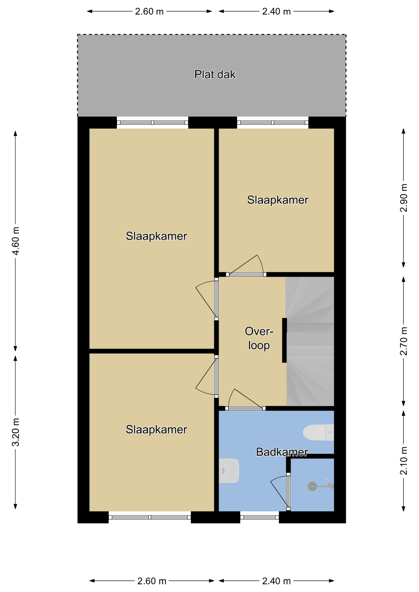 Eénmaal op de overloop zien we dat hetzelfde laminaat als op de trap, drempelloos doorloopt op de slaapkamers. Hier vinden we 3 volwaardige slaapkamers terug van respectievelijk 12m2, 8m2 en 7m2 groot. De grootste kamer is een echte ouderslaapkamer waarbij achter de deur ruimte is vrijgehouden voor een grote linnenkast. Ook hier vallen de hoge deuren en plafonds direct op en zijn de ramen eveneens voorzien van een draai/kiepfunctie. En wat de meesten erg prettig zullen vinden zijn de aanwezige rolluiken. Hierdoor zijn de slaapkamers 100% te verduisteren. Dat ze elektrisch te bedienen zijn maakt het extra comfortabel.