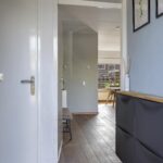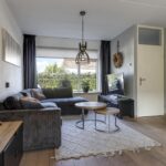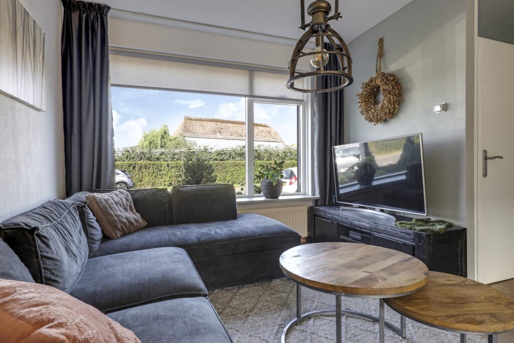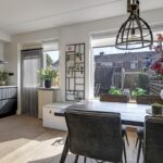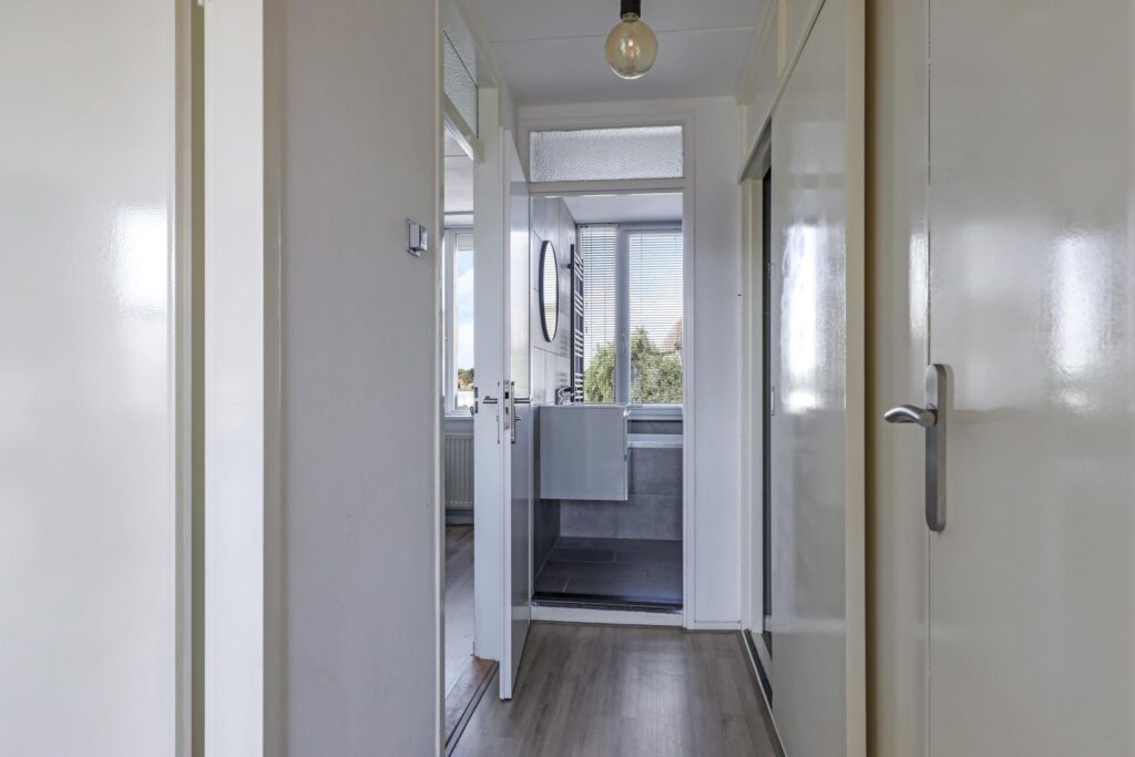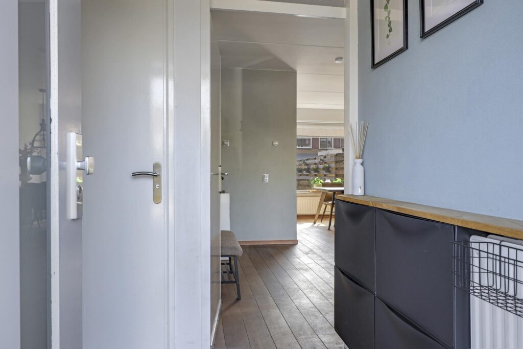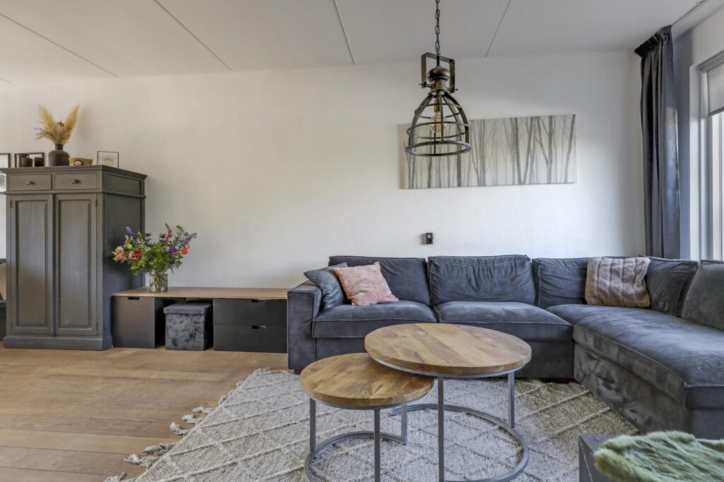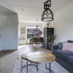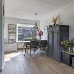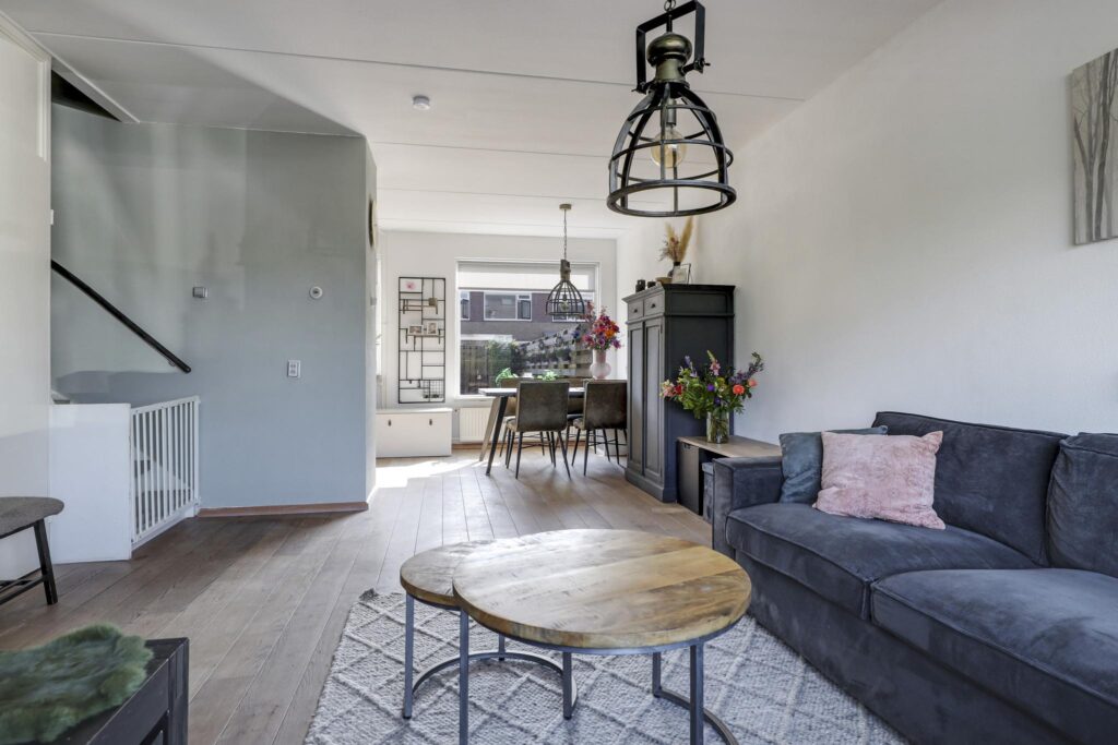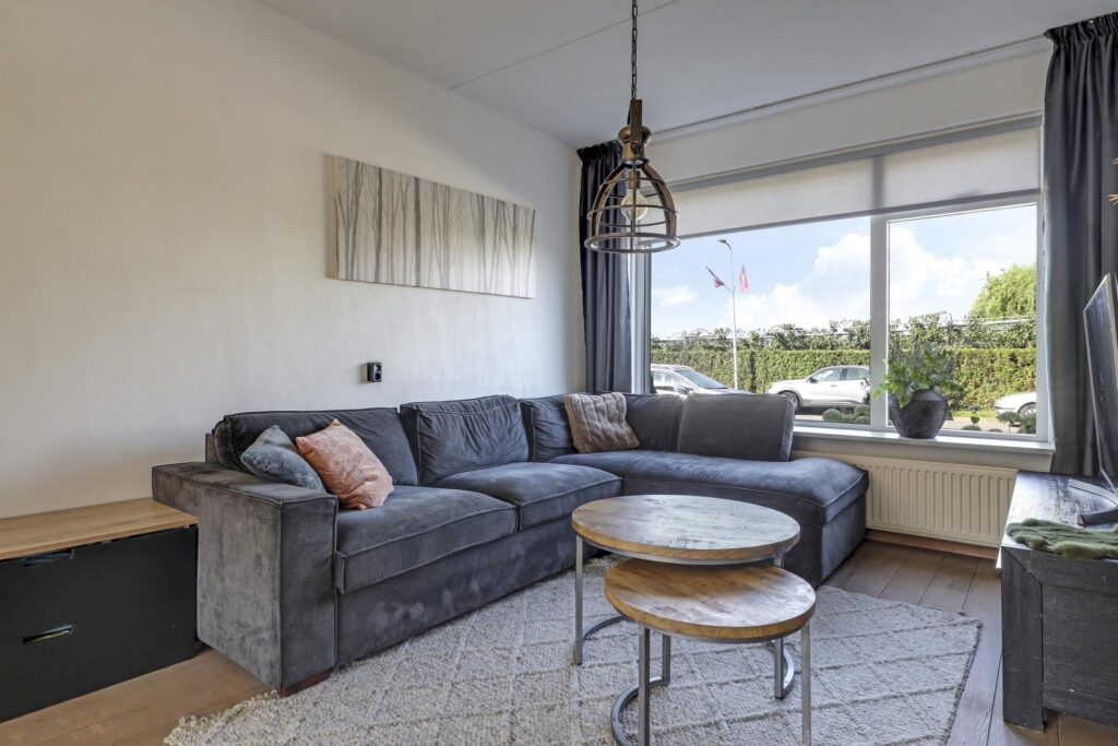 Deze woning wordt verzorgd bewoond waarbij de aankleding en afwerking voor een prettige woonsfeer zorgen. Dat wordt al meteen duidelijk wanneer je vanuit de hal de woonkamer in loopt. De massief houten vloer zal je daarbij direct aanspreken. De woonkamer heeft een ruimtelijke indeling waar je prima een hoekbank en een 6-persoons eettafel kwijt kunt. Grote ramen in voor- en achtergevel geven een fijne lichtinval waarbij je aan de voorzijde weg kijkt op een groene haag en fruitbomen (in plaats van overburen).