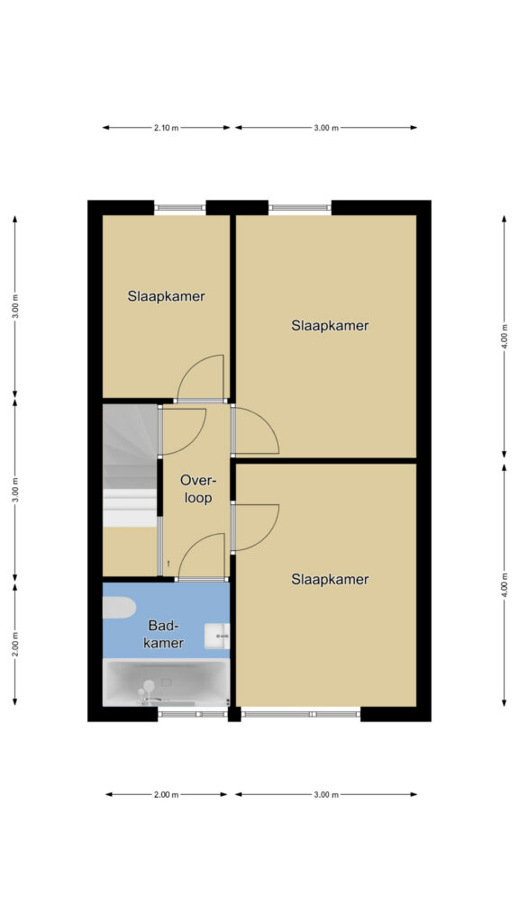 Via een afsluitbare trapopgang in de woonkamer bereiken we de 1e verdieping. Deze woonlaag is ingedeeld met 3 praktische slaapkamers van respectievelijk 12m2, 12m2 en 6m2 groot en zijn optimaal in te richten vanwege de rechte muren. De slaapkamer aan de voorzijde is voorzien van een rolluik waardoor je deze volledig kunt verduisteren. Alle slaapkamers zijn voorzien van dezelfde laminaatvloer hetgeen voor een éénduidige geheel zorgt.